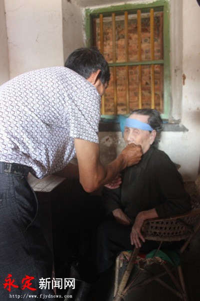 視頻加載中... 中國有句老話,叫“久病床前無孝子”,然而在永定區古竹鄉陂子角村卻有一位孝子,他用自己的實際行動和堅守,二十年如一日照顧雙目失明的母親,顛覆了“久病床前無孝子”的說法,他的事跡在鄰里鄉間成為美談,他就是蘇棣才。 昨日,筆者慕名來到蘇棣才家中。見到蘇棣才時,他正準備給92歲的母親劉秀鳳送飯,只見他小心翼翼地扶起母親,然后一小口一小口地把飯打給母親吃,完了還不忘給母親漱口,擦洗嘴角。“這是二十年來丈夫每天都要做的事。”蘇棣才老婆呂才招說。 今年57歲的蘇棣才告訴筆者,早年他的母親從廣東大埔嫁到永定陳東。但在他出生沒幾天后,父親就去世了,雖然生活艱苦,但母親卻舍不得把他送給別人養,即便后來改嫁到古竹,母親也一直把他帶在身邊,一把屎一把尿的把他拉扯大。蘇棣才說,自己成家后,特別是有了孩子后,更能體會到當年母親養我的不易,所以,在母親年老時,我應該好好盡孝,報答母恩。 1996年,72歲的劉秀鳳發現自己的右眼視力模糊而且痛得難忍,告訴兒子蘇棣才后,蘇棣才馬上帶她到臨縣的南靖縣醫院檢查,醫生說是患上了青光眼,如果不及時治療眼睛很快就會失明,治療費用大概要1000多元。劉秀鳳聽說要那么多錢后不想治療了,叫蘇棣才帶她回家。但蘇棣才不同意,堅持要給母親治眼睛。蘇棣才告訴筆者,當時的1000多元相當于全家一年的收入,而且那時已經有四個孩子了,生活過得比較拮據,但是想到母親小時候辛辛苦苦把我養大不容易,最終決定就算傾家蕩產也要把母親的眼睛治好。母親劉秀鳳的醫療費用花光了蘇棣才所有的積蓄,他甚至還向親朋好友借了一些錢。蘇棣才說只要能治好母親的眼睛,即使債臺高筑也值得!但是很不幸的是,雖然經過了治療,半年后劉鳳秀的眼睛最終還是失明了。劉鳳秀74歲的時候,另一只眼睛又患上了青光眼,蘇棣才向親朋好友借了一筆錢后再次帶她前往醫院治療。醫生告訴蘇棣才他的母親年紀太大了,做手術怕身體吃不消,而且劉秀鳳的眼睛已經沒有治療的意義了。蘇棣才這才放棄了治療。 失明后的劉秀鳳耳朵也變聾了。因為看不見聽不到,劉秀鳳從此不愿踏出房門一步,吃喝拉撒都在房間里,而且大部分時間都是在床上度過。蘇棣才曾試圖帶母親出房門走走,但拗不過母親,只能作罷。蘇棣才既要忙農活,又要照顧母親,喂飯、翻身、按摩、求醫問藥,里里外外忙個不停,但親朋好友卻從沒聽過他抱怨過一次。母親想吃什么東西,蘇棣才都會給她買。一次劉秀鳳突然想吃煎豆腐,蘇棣才就馬上放下手中的活,跑到集鎮上去買。 人老了,生病在所難免。我這20年都不敢睡安穩覺,生怕晚上母親突然生病。蘇棣才說,母親失明后自己就搬到了母親樓上住,這樣母親一有動靜就能及時知道。2012年9月的一個晚上,劉秀鳳突然肚子痛,在床上呻吟。蘇棣才聽到母親的呻吟后趕緊爬起來給母親吃肚子痛的藥。藥吃下去后,母親的疼痛沒有緩解,蘇棣才又趕緊騎著摩托車去鎮上請醫生來就診,打針吃藥。折騰到凌晨劉秀鳳才好點。擔心母親還有其他癥狀,蘇棣才就陪在母親身邊直到天亮。 蘇棣才說,人都有年老的時候,我母親以前辛辛苦苦把我養大,現在老了我應該好好報答她的養育之恩。而且,我孝敬母親也是為了給四個孩子做榜樣。 |