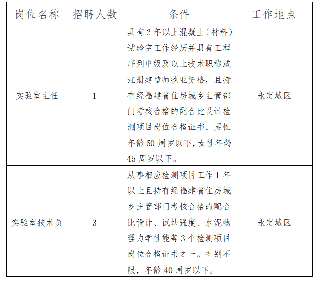 福建客家建設發展集團有限公司成立于2016年11月,公司主要承擔城市基礎設施建設、項目的投資建設與發展。現集團經營領域涵蓋房地產開發、農貿市場經營、渣土消納、貿易經營、物業管理、商品混凝土等。因公司業務發展需要,現決定面向社會公開招聘工作人員4名,具體事項公告如下: