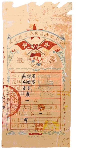 圖為永定縣第六區(qū)信用合作社發(fā)行的股票。 春秋輪轉(zhuǎn),日換星移,人生雖然短暫,但能不離不棄守望一生的東西并不多。如若有,那必定是情物交融、意義非凡之物。 2022年10月31日,我在好友福建省收藏家協(xié)會(huì)副會(huì)長(zhǎng)阮練標(biāo)先生的陪同下,前往永定區(qū)湖雷鎮(zhèn)上湖雷桔樹(shù)村,去看望一個(gè)素不相識(shí)年近九旬的老人。雖然不曾謀面,但這么多年來(lái),我一直默默崇拜這位老人,他用一輩子的心血,守護(hù)著爺爺留下的一張股票。他就是鄭朝綱先生! 1953年,還在永定一中上高中的鄭朝綱,在整理父輩留下的舊書時(shí),無(wú)意間發(fā)現(xiàn)了一張泛黃的股票。這張股票是1930年永定縣第一區(qū)信用合作社發(fā)行的,購(gòu)買人鄭洞芳是他的祖父。 永定縣(現(xiàn)為永定區(qū))是第二次國(guó)內(nèi)革命戰(zhàn)爭(zhēng)時(shí)期的全紅蘇區(qū)縣。1926年就建立了福建省第一個(gè)農(nóng)村黨支部,1928年舉行了震撼八閩的“永定暴動(dòng)”,創(chuàng)建了福建第一支紅軍部隊(duì)。全縣有基點(diǎn)村263個(gè),革命烈士4586人,涌現(xiàn)了張鼎丞等70多位中央和省市級(jí)領(lǐng)導(dǎo),其中有15位被授予少將軍銜,被譽(yù)為“紅旗不倒之鄉(xiāng)”。 1929年5月20日,紅四軍在毛澤東、朱德領(lǐng)導(dǎo)下從江西的瑞金第2次進(jìn)入閩西。5月23日凌晨,紅四軍擊潰守?cái)逞杆俟フ箭垘r縣城。戰(zhàn)斗結(jié)束后,當(dāng)日下午進(jìn)駐永定坎市,24日攻占湖雷,25日乘勝攻占永定縣城。取得勝利以后,在湖雷成立了永定縣革命委員會(huì)。 根據(jù)毛澤東的指示,1929年10月26日,永定縣第一次工農(nóng)兵代表大會(huì)在永定湖雷慶興寺召開(kāi),宣告縣蘇維埃政府成立,阮山當(dāng)選為主席,賴祖烈為財(cái)政委員。會(huì)議決定立即創(chuàng)辦生產(chǎn)合作社、消費(fèi)合作社和信用合作社,發(fā)展蘇區(qū)經(jīng)濟(jì),支援革命戰(zhàn)爭(zhēng)。 永定湖雷是縣蘇維埃政府機(jī)關(guān)所在地。那時(shí)候,當(dāng)?shù)厝罕娏?xí)慣稱呼湖雷及周圍地區(qū)為“豐田里”,蘇維埃政府剛建立時(shí)為豐田區(qū),也叫第三區(qū)。1930年2月9日,永定縣第二次工農(nóng)兵代表大會(huì)對(duì)轄區(qū)內(nèi)的行政區(qū)劃進(jìn)行調(diào)整,改第三區(qū)為第一區(qū),信用社也隨之更名為“永定縣第一區(qū)信用合作社”。永定縣第一區(qū)信用合作社主任是土生土長(zhǎng)的賴祖烈同志。為解決信用合作社資本金問(wèn)題,他廣泛發(fā)動(dòng)群眾募股集資,基本做到一戶一股,每個(gè)商店兩到五股,并在繳交股金時(shí)發(fā)給股票為憑。鄭洞芳就是在這種歷史背景下購(gòu)買的股票。 這張股票為毛邊紙單面三色石印印刷。整個(gè)票面為上、中、下三個(gè)部分。上部是股票主圖,中間是購(gòu)買股票的詳細(xì)記錄表格,下部是印刷單位名稱。主圖上方是一個(gè)拱形圖案,從左至右書寫股票發(fā)行單位名稱——“永定縣第一區(qū)信用合作社”。名稱中間有一個(gè)被遮蓋的五角星,五角星下方是交叉的兩面紅旗,紅旗中央有一個(gè)留白五角星,五角星內(nèi)有一個(gè)斧頭與鐮刀交叉的圖案。紅旗下方是一個(gè)地球圖形,地球中間有“世界大同”四個(gè)字。地球左右兩邊有“股票”兩個(gè)大字。 股票中間是購(gòu)買股票情況的詳細(xì)記錄表格。其中包括:姓名、住址、年齡、職業(yè)、股數(shù)、股金大洋(數(shù))、入股期、給票時(shí)間、給票經(jīng)手人,共9個(gè)填寫欄目。股票下方是承印單位落款。永定紅色政權(quán)建立后,隨著軍需民用的增加,為了戰(zhàn)勝敵人封鎖造成的困難,蘇維埃政府在湖雷開(kāi)始發(fā)展工業(yè)生產(chǎn),建立兵工廠,創(chuàng)辦“進(jìn)化石印社”。股票下方的承印單位“湖雷進(jìn)化石印”字樣落款,就是歷史的佐證。股票蓋有三個(gè)印章,一個(gè)是左邊的騎縫章,一個(gè)是給票經(jīng)手人私人印章,還有一個(gè)為防止繳款金額改動(dòng)的圓形小印章。給票經(jīng)手人賴祖烈的印文很清楚,圓形小章印文“主財(cái)之印”也很清楚。 1940年,鄭洞芳在購(gòu)買股票后的第十個(gè)年頭不幸去世了。可能連他自己都不曾想到,這張股票會(huì)被保留至今,成為一件見(jiàn)證紅色歷史的珍貴文物和子孫們的傳家之寶。 鄭朝綱說(shuō),發(fā)現(xiàn)這張珍貴的股票后,他馬上小心翼翼地用報(bào)紙包好,再用油紙?jiān)谕饷姘粚樱湃胄∧鞠渥畹紫隆T谥髱资甑臅r(shí)間里,這張珍貴的股票和鄭朝綱如影隨形。為更好地保管好這張股票,鄭朝綱還把它送到了照相館進(jìn)行塑封,使保存變得更加安全穩(wěn)妥。 鄭朝綱先生的兒孫后代都很有出息,家庭祥和,其樂(lè)融融。他退休之后回家安度晚年的休閑之余,經(jīng)常拿出這張一直堅(jiān)守的股票,看了又看,摸了又摸,他說(shuō):“這張股票多少錢都不會(huì)賣,那么多子孫后代,要讓他們一代一代地傳承下去!” 是啊,文物并非是一種靜默冰涼的東西,而是有著自己的故事與溫度,它所承載的不僅僅是歷史,還有人世間的情與愛(ài)! |