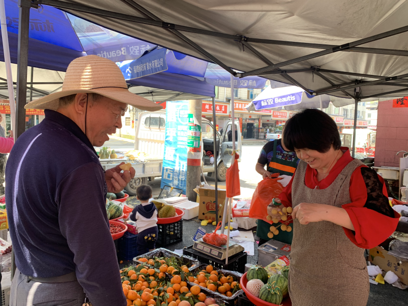 “剛開始搬進來的時候確實很不習慣,擔心換了地方沒有客流,擺了兩圩后發現生意更好了。”水果攤主陳阿姨一邊裝袋稱重一邊說:“鎮里的干部每次來得比我們都早,維持市場秩序、放置指示牌、站在路口引導居民。在他們的幫助帶動下,現在整個圩市環境提升很大,舒適又安心,村民更愿意來了。” |