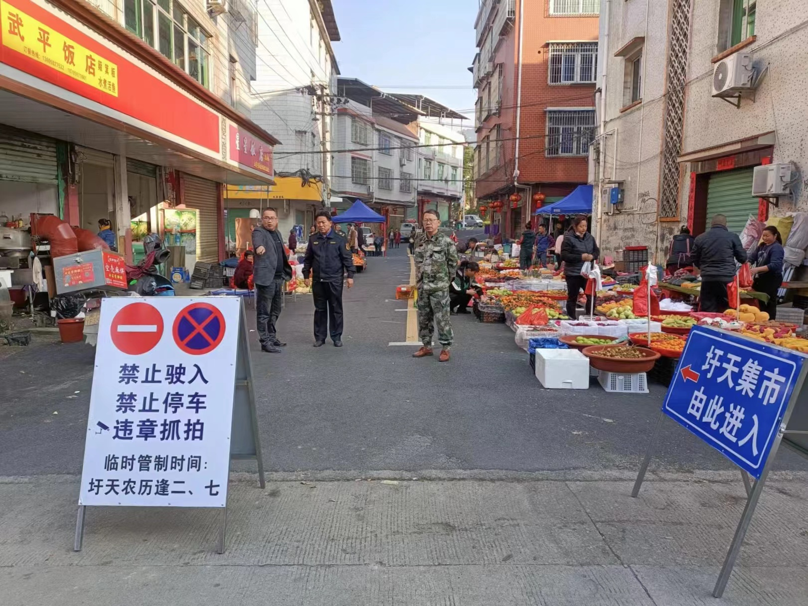 同時,按照商品種類將集市劃分為水果區、食雜干貨區、服裝鞋帽區、日雜農具區等多個區域,既方便群眾集中采購,也有效解決了攤販占道經營的問題,保證圩天鎮內主干道的正常通行。 “我在副街住了十幾年,沒想到‘白改黑’改到了家門口。圩場搬進來以后確實更方便了,區域劃分更明確,購買更集中,沒有車來車往也更安全,龍潭的環境真的是變得越來越好啦!”村民盧阿姨提著剛買的水果和新衣服欣喜地說。 隨著集鎮沿街立面店招、兩側綠化、路燈、通訊線路等基礎配套設施的增設完善,融合“蝴蝶蘭小鎮”元素的福文化燈牌再添新色,龍潭鎮集鎮改造提升工程既保留了原有的“鄉土味”,更賦予全新的“鄉村美”,鎮容村貌持續改善,群眾口碑顯著提升。 治理更貼心,徹底告別“臟亂差” 提升集鎮的硬件設施只是升級改造的一部分。如何針對性地管好人員秩序,更考驗著農村治理的“真功夫”。 為讓集鎮管理更見成效,切實解決好亂擺賣“痛點”問題,龍潭鎮成立“圩場遷移”行動領導小組,負責指導、督促、推進和協調解決行動中存在的具體問題,先后印發《關于開展集鎮街道及市場秩序綜合整治的通告》《關于圩天攤點搬遷的通告》等文件。 為確保“圩場遷移”行動順利實施,鎮黨員干部主動靠前、用心服務,通過耐心勸說、宣傳引導等方式,讓攤販們及時搬進副街設立的攤位上規范經營,并對部分占道經營商鋪外亂堆亂放貨物、雜物進行統一規整。 “既要嚴厲整治,也要直面攤販農戶生存經營的實際需求,真正做到便民、利民、惠民。”鎮綜合執法大隊長李慶柱說,今年以來,龍潭鎮組織開展集鎮集中整治行動10余次,發放宣傳單2000多份,讓文明新風樹起來,讓街道顏值靚起來。