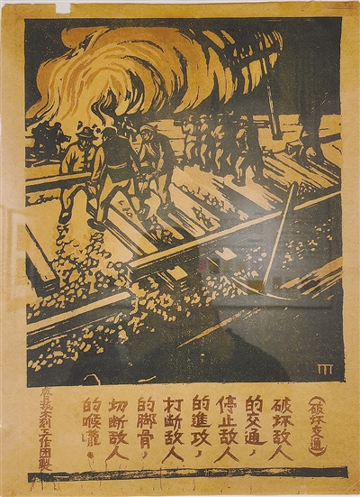 《破壞交通》。 胡一川 繪 1939年冬,日本侵略者模仿民間藝術形式印制了大量宣傳品,將“神判”即日本的判官圖印制成年畫,趁著春節快要來臨之機,加上一些小禮品廣為派發,試圖以小恩小惠收買人心,并宣傳所謂“大東亞共榮”。胡一川與戰友們幾經研究,決定針鋒相對,以刻刀和畫筆為武器,與日寇展開一場“年畫戰”。于是,在1940年春節前,胡一川和戰友們夜以繼日地創作了《破壞交通》《軍民合作》《保衛家鄉》等抗戰新年畫。他們借鑒中國傳統門神的創作技法,用戰士代替門神,將秦叔寶、尉遲恭的形象換成了八路軍、民兵,還寫上“加緊站崗放哨”“捉拿漢奸敵探”等文字以突出中心,加強宣傳效果。 新年畫創作出來后,胡一川和戰士們請民間藝人幫忙印制。除了向老百姓發放一萬多張外,胡一川和戰友們還背著年畫到襄垣縣西營集市擺攤叫賣,大受歡迎,當場賣掉數千張。在他們的努力下,當年在太行山抗日根據地老百姓家中,所有年畫、門神等形象都煥然一新,胡一川與戰友們的《軍民合作》一舉戰勝了日本侵略者的“神判”,老百姓寧愿掏錢買胡一川與戰友們的年畫,也不要日本人白送甚至加送禮品的年畫。八路軍打贏了一場特殊的文化戰。彭德懷看到年畫后,親自給木刻工作團寫信表揚他們,說:“這次你們的勇敢嘗試已經得到了初步成功,許多藝術工作者口喊大眾化,實際上是沒有真正做到,而你們已向這方面先走了一步……” 1940年2月8日,大年初一。朱德總司令出席八路軍野戰政治部于武鄉縣召開的文藝座談會并講話,勉勵文藝工作者更好地利用文藝進行對敵斗爭。八路軍野戰政治部副主任兼宣傳部部長陸定一作了《藝術工作的方向》的講話,充分肯定了木刻工作團這次“年畫戰”所取得的成就。 |