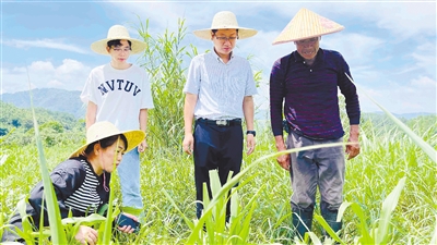 【閩西日報(bào)】永定區(qū)湖雷鎮(zhèn)干部群眾在上湖村察看巨菌草長勢