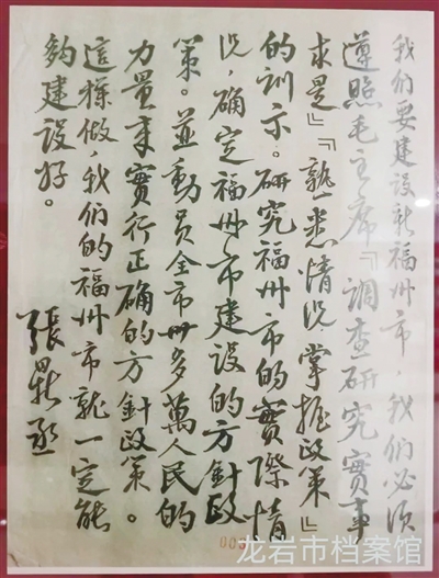 蘇區時期,在一次調查中,張鼎丞發現由于閩西蘇區大部分地區許多青壯年都去參加紅軍了,農村勞動力嚴重不足。為幫助農民促進農業生產,他在農村廣泛組織勞動合作社、耕田隊、犁牛合作社,統一調配勞力和耕畜、農具,幫助紅軍家屬解決耕田的困難,以解決勞力不足的問題。同時,通過深入農村調查,張鼎丞認識到,單靠米谷并不能滿足群眾的生活需求,也滿足不了革命戰爭的需要。于是,他便號召人民群眾積極搞好雜糧、蔬菜、竹木、煙茶、畜牧等多種經營。在調查研究中,他還十分重視總結經驗,樹立典型,表彰先進,充分激發人民群眾的積極性,以促進各地開展勞動競賽,推動蘇區工作的全面發展。 在擔任福建省蘇維埃政府主席期間,張鼎丞對省蘇維埃政府機關干部特別強調,要到下面去,深入基層密切聯系群眾。在他的以身作則和積極倡導下,當時的省蘇維埃政府機關,上至主席、下至普通干部,都經常深入基層調查研究,幫助群眾解決實際問題,在群眾中傳為佳話。 1932年冬的一天,張鼎丞冒著嚴寒走訪長汀縣的烈軍屬,了解他們的實際困難。回到機關后,他立即召開干部開會研究,決定除節日慰問烈軍屬外,省蘇維埃政府機關及所屬單位在家干部,每星期六都必須為烈軍屬和困難戶做一兩件好事,叫“做禮拜六”,并把它作為制度定下來。接著他便自己帶頭做,人們經??吹剿环职滋旌谝?,穿著草鞋,走家串戶為烈軍屬解決困難。從此,這項擁軍優屬幫助困難戶的活動,很快在長汀和全省蘇區廣泛開展起來。 新中國成立后,1953年、1958年和1961年,張鼎丞曾三次回到閩西老區,開展調查研究并指導工作。其間,他多次強調,共產黨的干部“都是為人民服務的勤務員,人民生活得怎么樣,是頭等大事?!薄皯敯讶嗣竦纳顣r刻掛在心頭?!睆埗ω┧值娜嗣裰辽系睦砟睿杂X把自己放在群眾之中,永葆“人民最好的勤務員”的本色,是新時代黨員干部學習的典范。