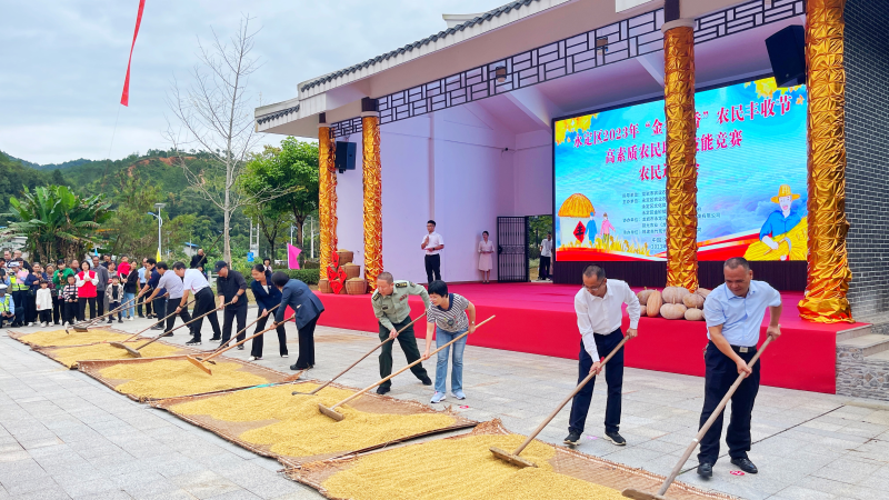 視頻加載中... 永定新聞網訊(熊 川)立冬剛過,大地流金收獲忙。11月11日,永定區2023年“金谷飄香”農民豐收節暨高素質農民職業技能競賽、農民運動會在金砂紅色小鎮舉行。金黃的稻浪、飽滿的玉米、群眾的滿臉笑意,與紅色小鎮相映成輝,訴說著永定“紅綠”相融帶來的豐收故事。龍巖市農業農村局黨組成員、副局長劉景景,區領導田俠、林建文、江海輝、溫福英、闕啟旺參加相關活動。