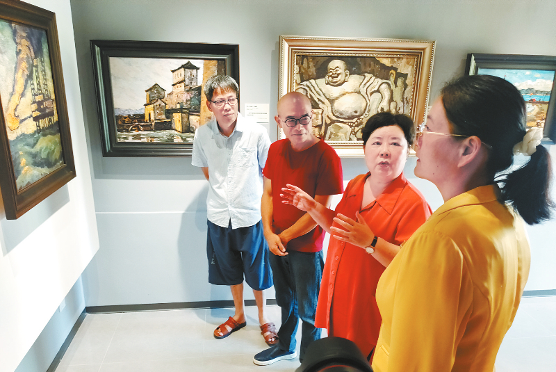 圖為胡丹妮在永定下洋胡一川藝術館介紹胡一川畫作。