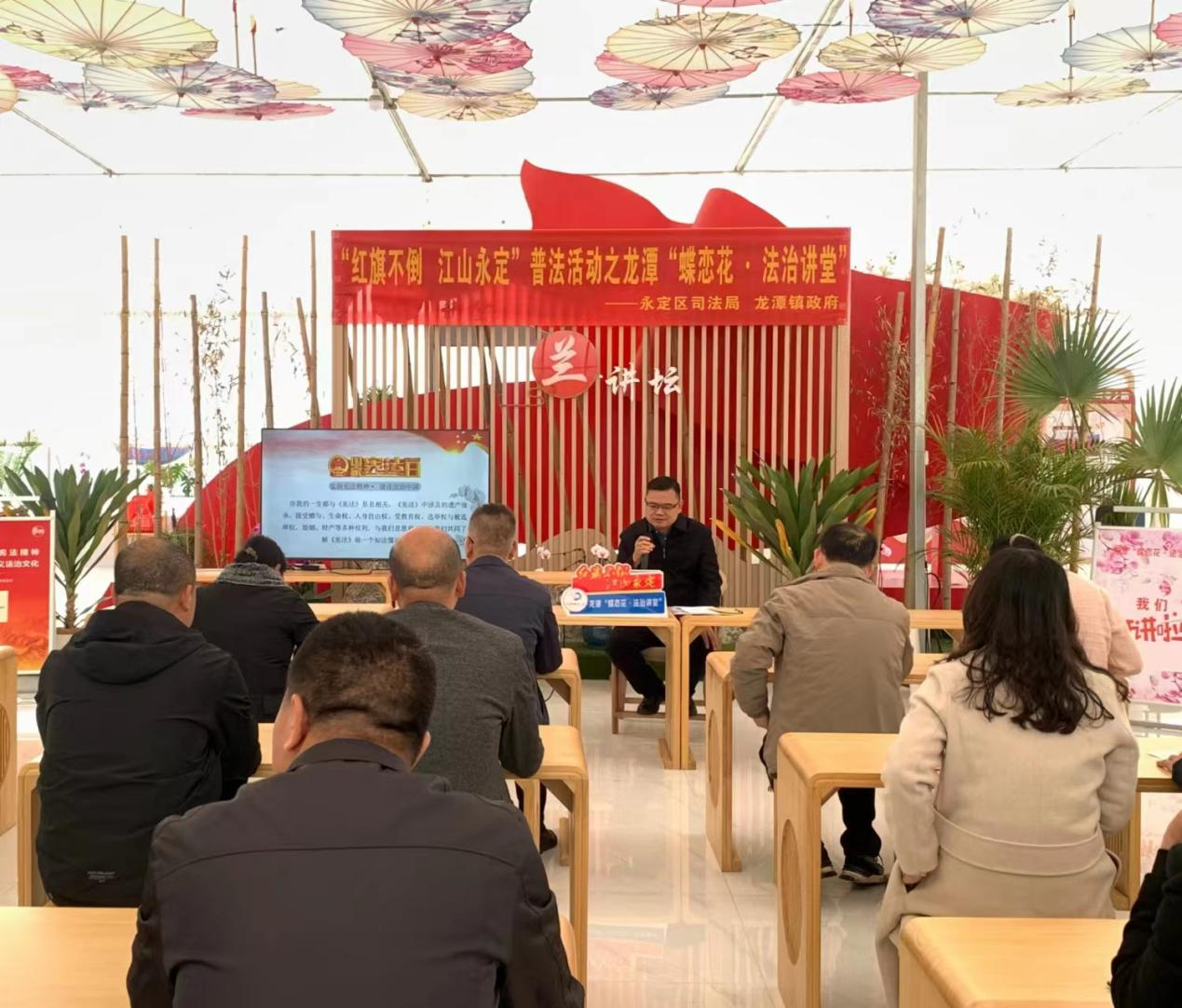 今年12月4日是第十個國家憲法日,也是第六個“憲法宣傳周”的第一天。區司法局以“大力弘揚憲法精神,建設社會主義法治文化”為主題開展系列活動,龍潭“蝶戀花·法治講堂”是其中之一。 當天,區司法局、龍潭鎮政府在“蝶戀花·法治講堂”龍潭鎮全體干部職工上了第一課,主題為“學習宣傳貫徹黨的二十大精神,推動全面貫徹實施憲法。”進一步充實與干部群眾日常生活息息相關的憲法法律知識,引導廣大干部依法執政,提升法治觀念和法律意識,引導群眾依法辦事,遇事找法,解決問題用法,化解矛盾靠法,豐富干部群眾的法治文化生活。 與此同時,永定區“蒲公英”普法志愿者在“蝶戀花·法治講堂”利用標語、掛圖、展板、現場答疑、分發宣傳單等方式,圍繞著《憲法》的作用、《憲法》規定了哪些內容等方面,以老百姓聽得懂、記得住的方式,推進憲法和法律普及教育,增強群眾法律意識。