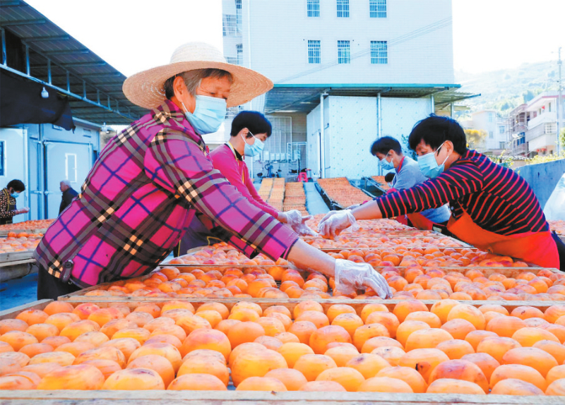 視頻加載中... 柿餅飄香果農樂 ■ 黃秋萍 陳景彬 文/圖 11月21日,我們走進永定區高頭鎮大嶺下村,只見大大小小的柿餅加工廠正在緊張地加工柿餅。村民們用竹架子整整齊齊、密密麻麻地擺放已經削了皮的柿子,曬柿場成了一片金黃色的海洋,在陽光下散發著誘人的香氣。 從事柿餅加工十多年的江建成從小就跟著父親制作柿餅,是地地道道的“曬柿專家”,他告訴筆者,每一個柿餅都要經過選果、削皮、擺曬、翻揉、晾曬等多道工序,非常耗時。“柿果要自然曬三天左右,我們就開始打青,把柿果旁邊稍微捏一下,再繼續曬個四五天,柿果就變軟成柿餅,軟了之后我們再將它的纖維打散,更好促進柿餅的糖分生成,提升柿餅的口感。” 據了解,柿餅是永定客家的特色美食,每年10月至12月是制作的最佳時期。每到此時,當地果農就利用農閑時間加工柿餅,選取果形端正無傷優質果,經過去皮、晾曬、揉餅、捂霜等多個環節,歷時近1個月加工完成。由于當地一直沿用傳統的制作工藝,永定柿餅的味道是其他柿餅無法比擬。晾曬好的柿餅圓潤飽滿,底色深紅,白霜如雪,入口軟糯,營養豐富,老少喜食。 “我家的柿餅都靠純天然晾曬,每斤柿餅要四斤才可以曬到一斤,按照大小、顏色、糖霜情況分為上品和中下品,上品柿餅的線上零售價格能達到每斤15元到25元不等。”江建成說,“到目前為止,我的預訂單已經達到四萬多斤,主要銷往廣東,福州,廈門等地,每年從九月份開始,到12月份才可以結束,每年大概鮮果需要四十萬斤左右。” 據了解,永定區現已成為華東地區最大的柿子生產基地,種植規模達8.6萬畝,產量6萬多噸,經營農戶2萬多戶,小小柿餅成為農民增收的致富金果。 |