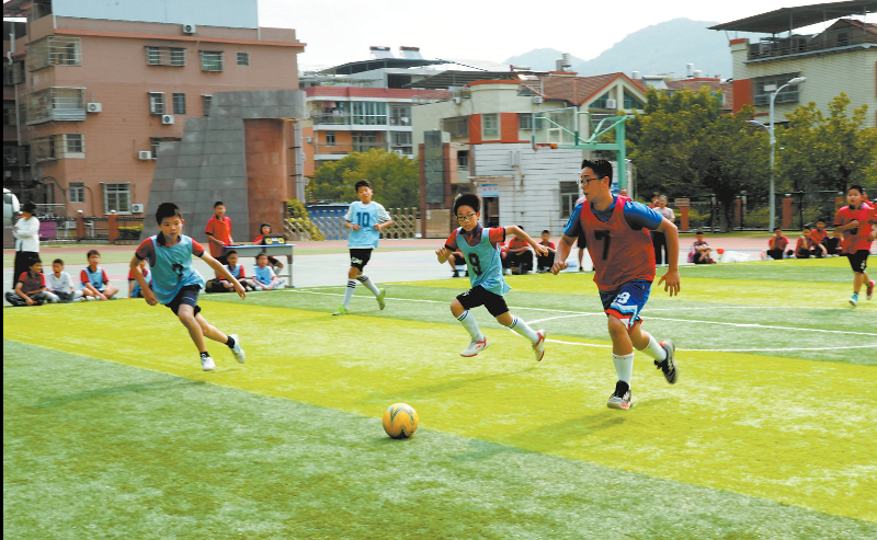 “我很喜歡足球,很喜歡和伙伴們在賽場上奔跑的感覺,一次次進球、一次次團隊間的配合,讓我學會堅持,學會團結。”永定區龍鳳小學邱子昕同學說,“以后我一定會努力訓練,爭取長大后能為中國足球爭光。”永定區龍鳳小學是全國青少年校園足球特色學校,是杭州亞運會組委會授予的“亞運足球夢想學校”,具有深厚的足球底蘊。目前,該校班班都有足球隊,每周都上足球課,已逐步形成“足球比賽鍛煉人、足球文化感染人、足球精神鼓舞人”的校園足球文化特色。