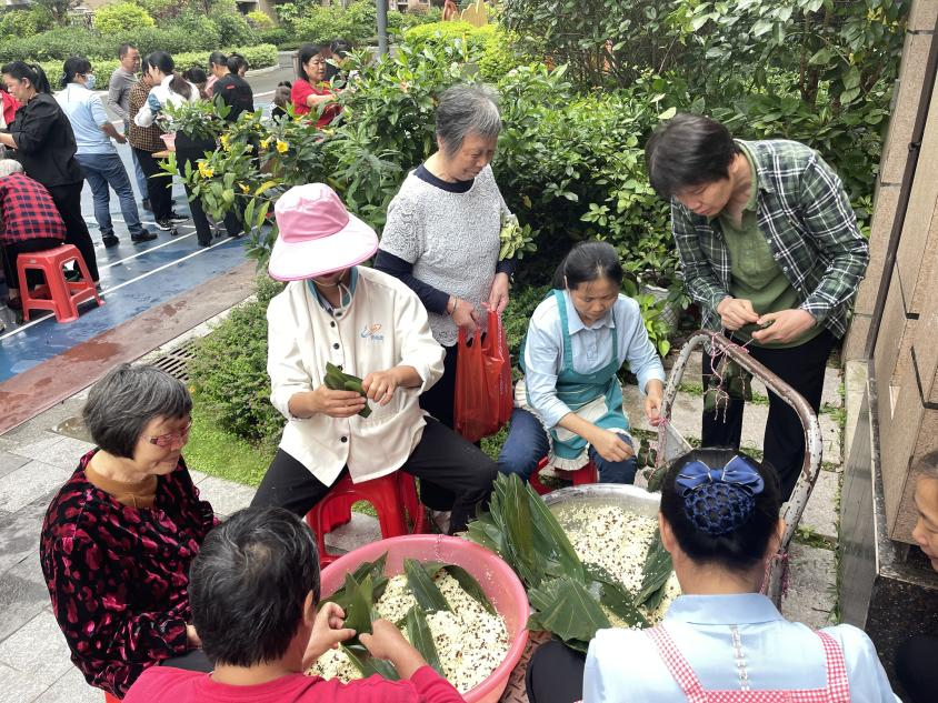 活動(dòng)現(xiàn)場(chǎng),粽葉飄香、歡聲笑語(yǔ),居民齊聚體驗(yàn)民俗。社區(qū)居民在片片粽葉、縷縷米香中寄托節(jié)日情感,增強(qiáng)鄰里交流,讓大家感受到社區(qū)大家庭的溫暖和關(guān)懷,同時(shí)希望此次活動(dòng)能為高考學(xué)子送去高“粽”祝福。在大家的共同努力下,一個(gè)個(gè)鮮綠的粽子“新鮮出爐”,營(yíng)造歡樂祥和的端午氛圍。