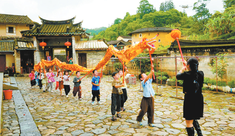 土樓娃一邊舞龍一邊哼唱童謠 “我們這邊有這種說法,‘戴個香草包,不怕五蟲害’的說法,這香草包用五彩繩編成繩索,用碎布縫成香包,香包里裝有艾葉、丁香、陳皮等十幾種中草藥,永定區(qū)湖坑鎮(zhèn)洪坑村村民曾玉琴說,“這個時候戴這個香包,不僅能安神驅(qū)蚊,更主要的是傳達美好寓意、預(yù)祝幸福平安,希望孩子們戴著這個香包能平安、幸福。”