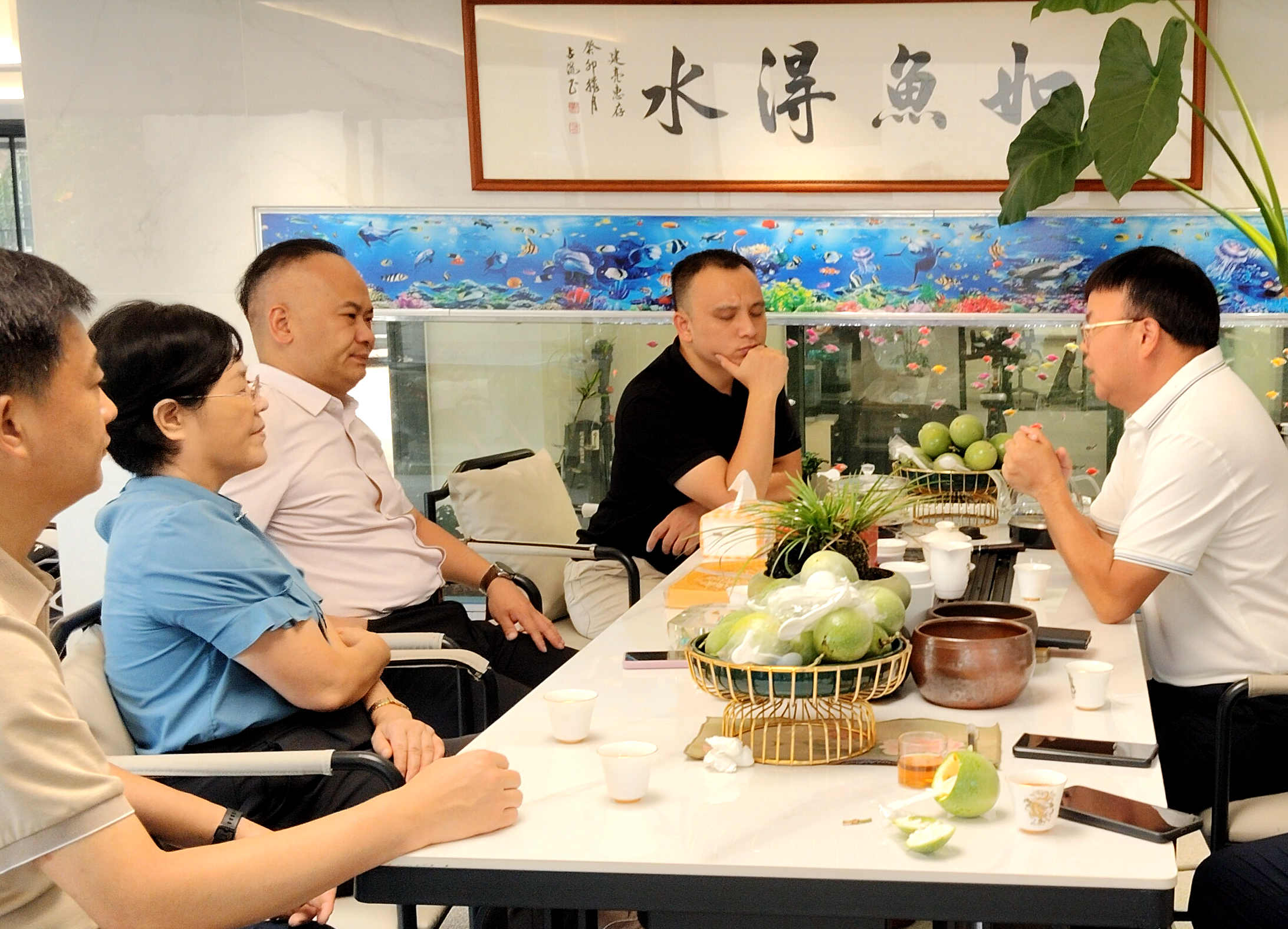 ▲ 8月12日下午,副區長溫福英帶隊前往古竹鄉走訪外出鄉賢、廈門銀鷺集團總經理呂建亮,就永定區農業產業品牌培育、現代農業產業園建設、農業產業項目招商等進行溝通交流,洽談下一步合作方向。區農業農村局、國投集團等單位負責人參加。