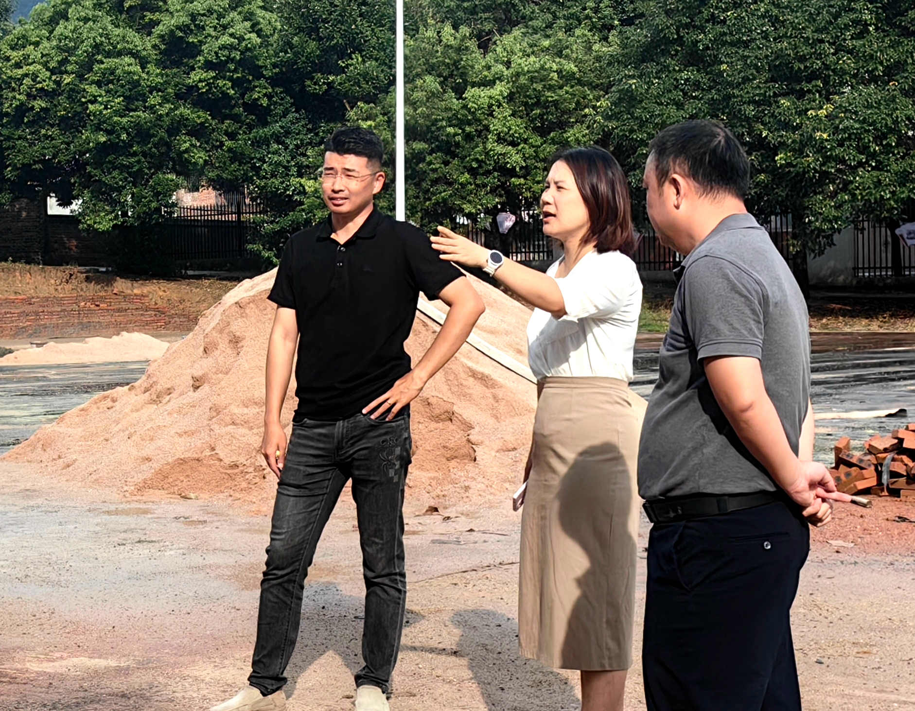 ▲ 8月12日,岐嶺鎮到岐嶺中心小學籃球場改建項目和烈士陵園基礎設施提升項目現場察看工程進展情況,提出相關要求。