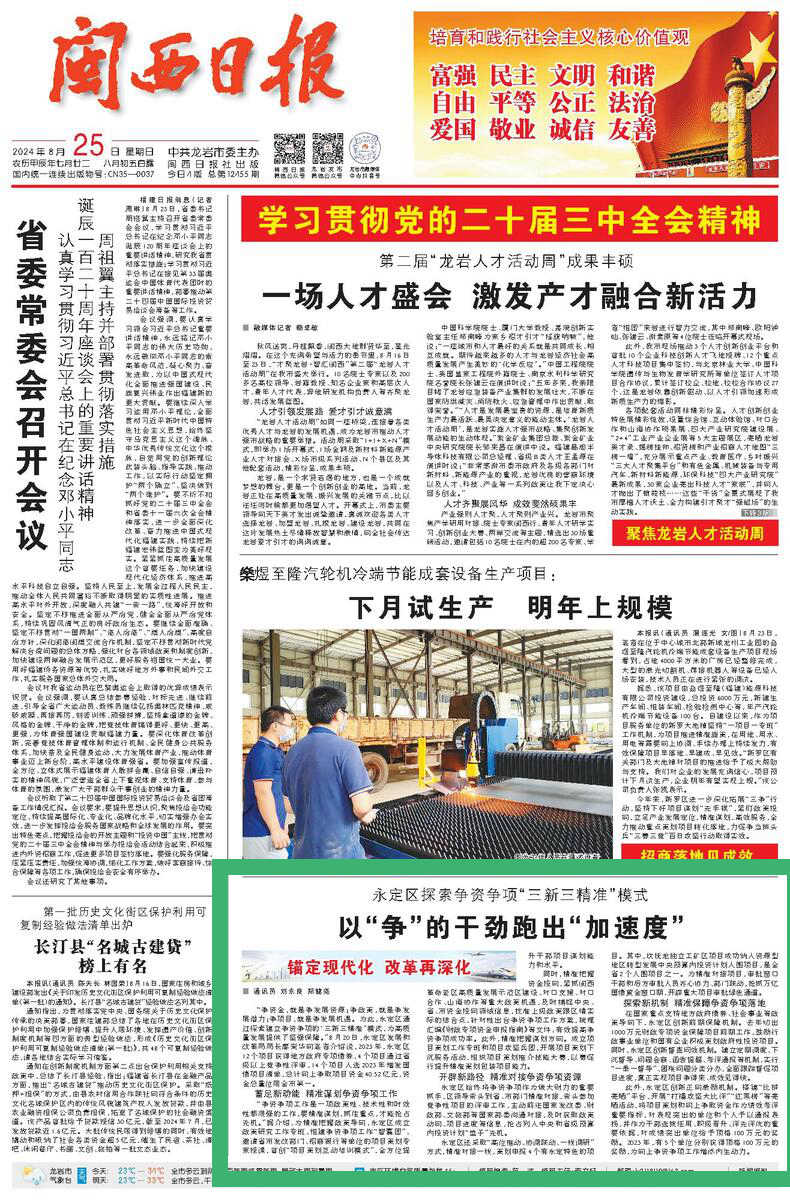 永定區(qū)探索爭資爭項“三新三精準”模式 以“爭”的干勁跑出“加速度” “爭資金,就是爭發(fā)展資源;爭政策,就是爭發(fā)展?jié)摿Γ粻庬椖浚褪菭幇l(fā)展機遇。為此,永定區(qū)通過探索建立爭資爭項的‘三新三精準’模式,為高質(zhì)量發(fā)展提供了堅強保障。”8月20日,永定區(qū)發(fā)展和改革局局長廖榮華向筆者介紹說,2023年,永定區(qū)12個項目獲得地方政府專項債券,4個項目通過省級以上競爭性評審,14個項目入選2023年增發(fā)國債項目清單,總計向上爭取項目資金40.52億元,資金總量位居全市第一。 蓄足新動能 精準謀劃爭資爭項工作 “爭資爭項工作是一項政策性、技術(shù)性和時效性都很強的工作,要精準謀劃,抓住重點,才能搶占先機。”據(jù)介紹,為精準把握政策導(dǎo)向,永定區(qū)成立政策研究工作專班,組建爭資爭項工作“智囊團”,邀請省市發(fā)改部門、招商銀行等單位的項目策劃專家授課,首創(chuàng)“項目策劃互動培訓(xùn)模式”,全方位提升干部項目謀劃能力和水平。 同時,精準把握資金投向,緊抓閩西革命老區(qū)高質(zhì)量發(fā)展示范區(qū)建設(shè)、對口支援、對口合作、山海協(xié)作等重大政策機遇,及時捕捉中央、省、市資金投向領(lǐng)域信息,找準上級政策跟區(qū)情實際的結(jié)合點,針對性出臺爭資爭項工作方案,梳理匯編《財政專項資金申報指南》等文件,有效提高爭資爭項成功率。此外,精準把握謀劃方向。成立項目策劃工作專班和項目攻堅兵團,開展項目策劃下沉服務(wù)活動,組織項目策劃推介技能大賽,以賽促行提升精準策劃包裝項目能力。 開辟新路徑 精準對接爭資爭項資源 永定區(qū)始終將爭資爭項作為做大財力的重要抓手,區(qū)領(lǐng)導(dǎo)帶頭到省、市部門精準對接,帶頭參加競爭性項目的評審工作,主動前往國家發(fā)改委、財政部、文旅部等國家部委溝通對接,及時獲取政策動向、項目進度等信息,搶占列入中央和省級預(yù)算內(nèi)投資計劃“盤子”先機。 永定區(qū)還采取“高位推動、協(xié)調(diào)聯(lián)動、一線調(diào)研”方式,精準對接一線,策劃申報4個有永定特色的項目。其中,坎撫龍獨立工礦區(qū)項目成功納入資源型地區(qū)轉(zhuǎn)型發(fā)展中央預(yù)算內(nèi)投資計劃入圍項目,是全省2個入圍項目之一。為精準對接項目,審批窗口干部和后方審批人員齊心協(xié)力、部門聯(lián)動,搶抓萬億國債黃金窗口期,開辟重大項目審批綠色通道。 探索新機制 精準保障爭資爭項落地 在國家重點支持地方政府債券、社會事業(yè)等政策導(dǎo)向下,永定區(qū)創(chuàng)新前期保障機制。去年切出1000萬元財政專項資金保障項目前期工作,鼓勵行政事業(yè)單位和國有企業(yè)積極策劃政府性投資項目。同時,永定區(qū)創(chuàng)新督查問效機制。建立定期調(diào)度、下沉督導(dǎo)、問題會商、函告提醒、考評通報等機制,實行“一季一督導(dǎo)”、困難問題分類分辦,全面跟蹤督促項目進度,真正實現(xiàn)項目爭得來、成效見得快。 此外,永定區(qū)創(chuàng)新正向激勵機制。搭建“比拼亮?xí)瘛逼脚_,開展“打擂攻堅大比評”“紅黑榜”等亮?xí)窕顒樱瑢㈨椖坎邉澓拖蛏蠣幦≠Y金作為績效考評重要指標,對表現(xiàn)突出的單位和個人予以通報表揚,并作為干部選拔任用、職級晉升、評先評優(yōu)的重要依據(jù),對成績突出單位給予頂格100萬元的獎勵。2023年,有5個單位分別獲得頂格100萬元的獎勵,為向上爭資爭項工作增添內(nèi)生動力。 ※※ 作戰(zhàn)行動 ※※ 永定福萊得新材料生產(chǎn)項目預(yù)計10月試產(chǎn) 8月18日,永定工業(yè)園南部園區(qū)的福萊得新材料生產(chǎn)項目建設(shè)現(xiàn)場一派熱火朝天。盡管被太陽烤熱的黑色鋼架的溫度達到60攝氏度,但阻擋不了工人師傅施工的步伐,他們冒著熱浪,加快搭建鋼構(gòu)廠房,以確保項目早竣工、早投產(chǎn)。 “目前,項目已完成投資超過8000萬元。1號和2號廠房的主體結(jié)構(gòu)已經(jīng)建成,3號廠房正在加快鋼結(jié)構(gòu)施工,預(yù)計8月底可全部建成,9月份設(shè)備陸續(xù)進場安裝,10月實現(xiàn)試產(chǎn)。”項目負責人童顯平表示,項目的快速推進,離不開永定相關(guān)部門“媽媽式”服務(wù),特別是在證件辦理方面,很多證件都是政府幫忙代辦的,節(jié)省了企業(yè)很多時間。 “該項目落地后,我們及時成立專項工作專班,緊盯項目建設(shè)過程中的各個環(huán)節(jié),做到能夠幫代辦就幫代辦,不能幫代辦我們陪同辦,確保項目順利且迅速推進,實現(xiàn)日日有新貌,周周有變化,月月有進度。”永定工業(yè)園區(qū)產(chǎn)業(yè)發(fā)展促進中心主任劉榮階說。 據(jù)介紹,省重點項目永定區(qū)福萊得新材料生產(chǎn)項目,用地約18畝,計劃總投資2.5億元,建筑面積約11000平方米,可新增3—5條環(huán)保型熱熔膠生產(chǎn)線,主要應(yīng)用服裝、鞋材、電子、醫(yī)療、家具、家電、汽車和新能源動力電池等方面。項目投產(chǎn)后,預(yù)計第一年產(chǎn)值5000萬元以上、納稅額100萬元以上,隨著產(chǎn)能的逐步提高,納稅額也將逐年增加。 岐嶺鎮(zhèn)廣龍合作新農(nóng)人創(chuàng)業(yè)基地揭牌 8月20日,岐嶺鎮(zhèn)廣龍合作新農(nóng)人創(chuàng)業(yè)基地揭牌。基地的建設(shè),將