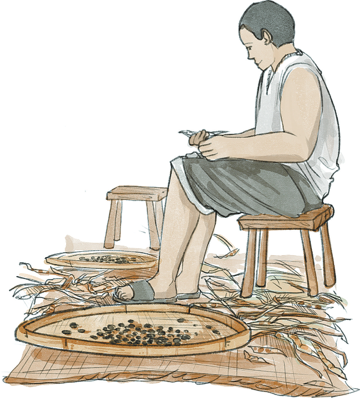 劉小飛 繪 ■ 葛小青 近日,又從市場上買回“紅糖姜艾黑豆”品嘗。加一杯清茶,茶清,豆香,細嚼慢飲,悠閑時光。吃著,飲著,心頭忽地一顫,不禁想起一些往事,心神馳入童年的無憂時光。 兒時,母親種很多黑豆,不僅在田埂上種,地頭旮旯也種,在不是特別干旱的土地上,成片成片或見縫插針地種。 黑豆可是廣種薄收的作物。端午節前種下去,歷經炙陽烈雨,至秋季稻子黃熟時方有收成。帶上挑桿、篾條和鐮刀,砍下豆苗,綁兩大捆挑回,攤在曬谷坪里晾曬。 南方秋季多晴,曬幾天后,豆莢水分漸失。“啪!啪!”一聲聲爆裂蹦響,猶如熱鍋炒豆,煞是好聽。圓滾滾的豆粒冒著微微熱氣,爽快地跳起,再冒冒失失俯沖著地。有的不太老實,在地上打個滾,就神龍不見首尾;有的蹦起幾十厘米高,好似天女散花;有的瀟灑地鉆入坪外的草地。來年春天,這些逗留在外的頑皮兒,個個迫不及待地搖身一變,嫩白頸項上扎起兩個油綠小辮。有細心好事的孩子,發現新大陸似的喊:“你們快來看啊,這里有豆苗!好多棵哦!”小孩們好奇心強,一擁而上,留下空闊的曬谷坪,靜靜守候著他們再次返回,在它的心臟里熱火朝天地漾著童趣。 收豆在傍晚進行。黃昏降臨,余暉斜長,冉冉地灑滿大地。曬谷坪里,大人與孩子三五成群,拿著棒槌或木棍,在各家地盤上敲敲打打。一株豆苗,從一頭敲至另一頭。敲完一株,雙眼快速地掃一遍,有疑惑的,用手擠一下豆莢,確認沒有飽滿的了,才把豆苗放一邊?!芭榕?!砰啪!”力氣使在豆莢上,力量震顫水泥地。響聲又沉又脆,鏗鏘有力,此起彼伏。那是農人奏起的優美愉悅的心調。 讓所有飽滿的豆子都誠實地面世,是收豆人的本分工作。天黑前,把豆子歸攏一起,裝上半撮箕,雙手握住撮箕兩邊,往高處一拋,又一拋......動作連貫,豆葉和灰塵紛紛攘攘朝外飛去,癟豆則朝撮箕口地聚攏??礈屎线m的當口,再用力甩起撮箕,緊接著往前一送——癟豆恰到好處地拋落在地,偶有個別漏網之魚,別急,再拋幾下,癟豆盡數甩在撮箕口,連同碎莖等雜質,又輕輕地甩將出去,留下顆粒飽滿的豆子,然后裝入蛇皮袋。袋子鼓滿,豐盈了農人的心。 我家收回的黑豆,被母親掛在谷倉內的墻壁上。平時,家里會煮些黑豆吃。每到春節,母親炒幾升黑豆當作茶點。我的上衣口袋,總是鼓突突的。閑適的正月時光,從口袋里掏出幾粒豆子,抬手,仰脖,張嘴——眨眼間一氣呵成,嘎嘣脆的聲音歡快響起。也有人家沒炒豆的,若有玩伴伸出手來,懇求地說句:“給我吃一點吧?!笨兄沟暮⒆?,便會毫不吝嗇地掏出一把,略一思索,數著顆粒,按著人頭勻分過去。分到某位,嗯?記得曾被其欺負過!想起那吃過的虧,即刻抽回手,小眼神凌厲一掃:“你講,那天為什么偷偷用石子扔我?”那孩忙愧疚地說:“......我以后都不會打你了,你相信我吧!”眼神充滿了誠實和期待。 分豆的孩子還在遲疑,她母親見了,眉眼一彎,露齒笑道:“哎呀,分豆分豆,人人都有!大家一起玩,不能打架的!”自家孩子遵從母命:“給你!吃完了豆子,我們一起玩?!甭曇羧岷陀押谩P『⒆觽冊趩柎鹬g,加以大人一番點撥,就冰釋前嫌了!嘎嘣脆的響聲,又此消彼長,不絕于耳。后續是,兒時玩伴不常見,微信視頻不忘連。另外,對于愛吃黑豆的我來說,只要牙口好,黑豆吃到老! 往事已矣,光陰一晃是中年,憶起有關黑豆的往事,無不明媚有趣,時而暖意融融,時而忍俊不禁。 |