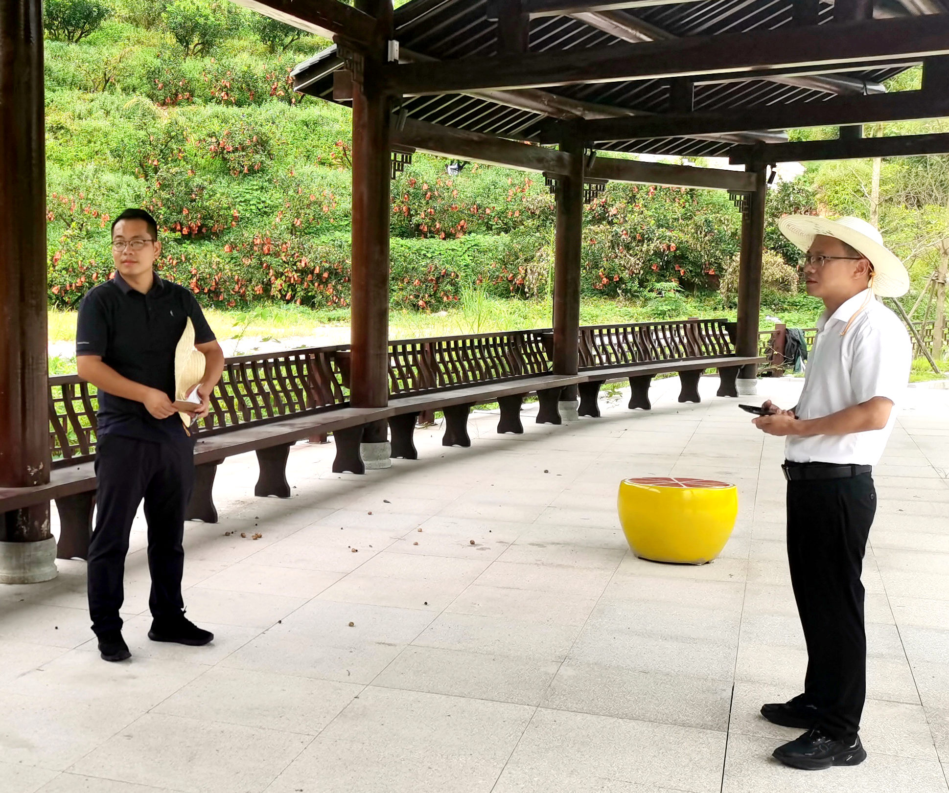 ▲ 8月28日,洪山鎮前往洪山鎮柚文化公園,現場察看永定區2024年環龍湖生態產業“跨鄉聯建”暨永定福柚爭奪賽活動籌備情況。