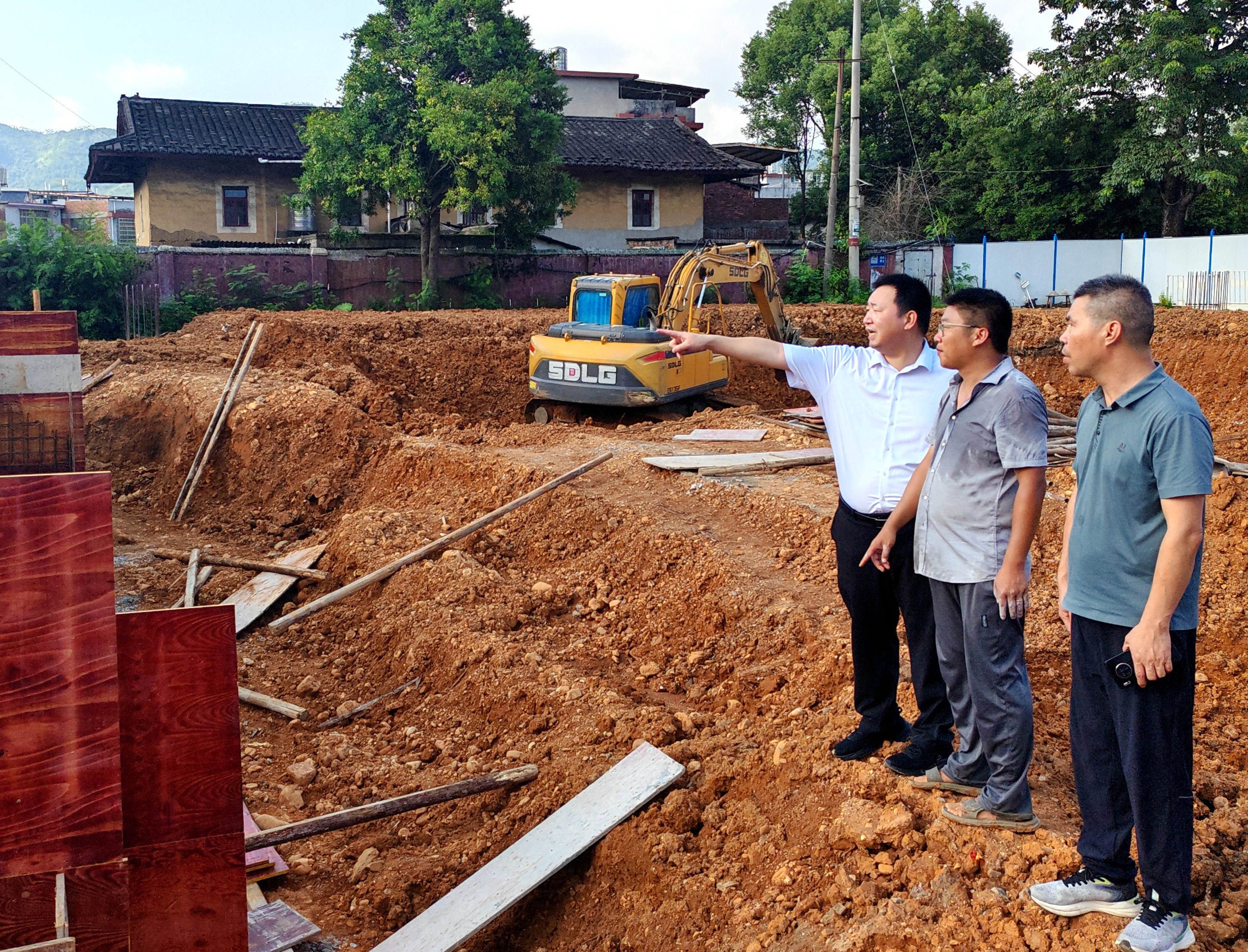 ▲ 8月28日,湖坑鎮在省重點項目中國土樓酒村,一線推動項目建設。