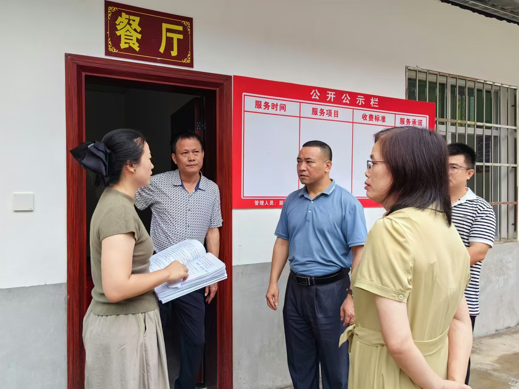 ▲ 8月28日,大溪鄉陪同區委督查室、區民政局工作人員在三堂村督查“長者食堂”項目建設情況。