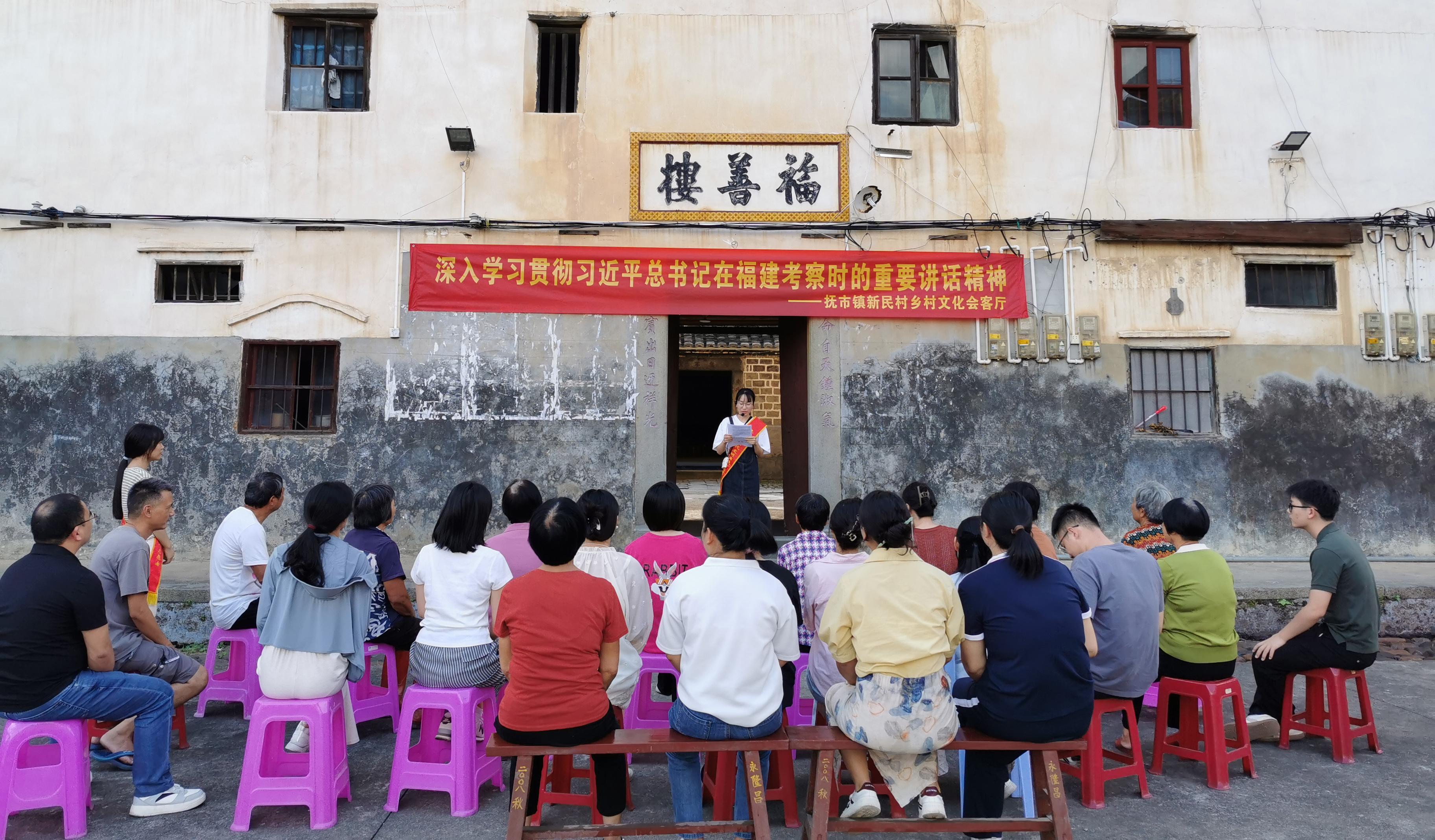 在“世界最高土樓”——省保文物單位“永隆昌”樓大門坪前,二十多位干部群眾圍坐在一起,一場(chǎng)別開生面的宣講便開始了。“新時(shí)代8090”的宣講員用通俗易懂的語(yǔ)言,結(jié)合村里發(fā)展實(shí)際和群眾身邊的變化,對(duì)習(xí)近平總書記在福建考察時(shí)的重要講話精神以及黨的二十屆三中全會(huì)的重大意義、主要目標(biāo)和任務(wù)進(jìn)行深入淺出的講解。 “我們要認(rèn)真深入學(xué)習(xí)貫徹習(xí)近平總書記在福建考察時(shí)的重要講話精神,把文化遺產(chǎn)保護(hù)與鄉(xiāng)村振興戰(zhàn)略緊密結(jié)合,轉(zhuǎn)變思路,進(jìn)一步提升‘澤東樓’‘永隆昌’‘永豪樓’‘東華山’以及驪龍書香文化園、福溪學(xué)習(xí)樂(lè)園等紅色文化、客家文化、鄉(xiāng)村文化內(nèi)涵和吸引力,推動(dòng)鄉(xiāng)村旅游發(fā)展,開辟一條撫市發(fā)展新路徑。”撫市鎮(zhèn)黨委副書記、鎮(zhèn)長(zhǎng)賴堰楚表示。 |