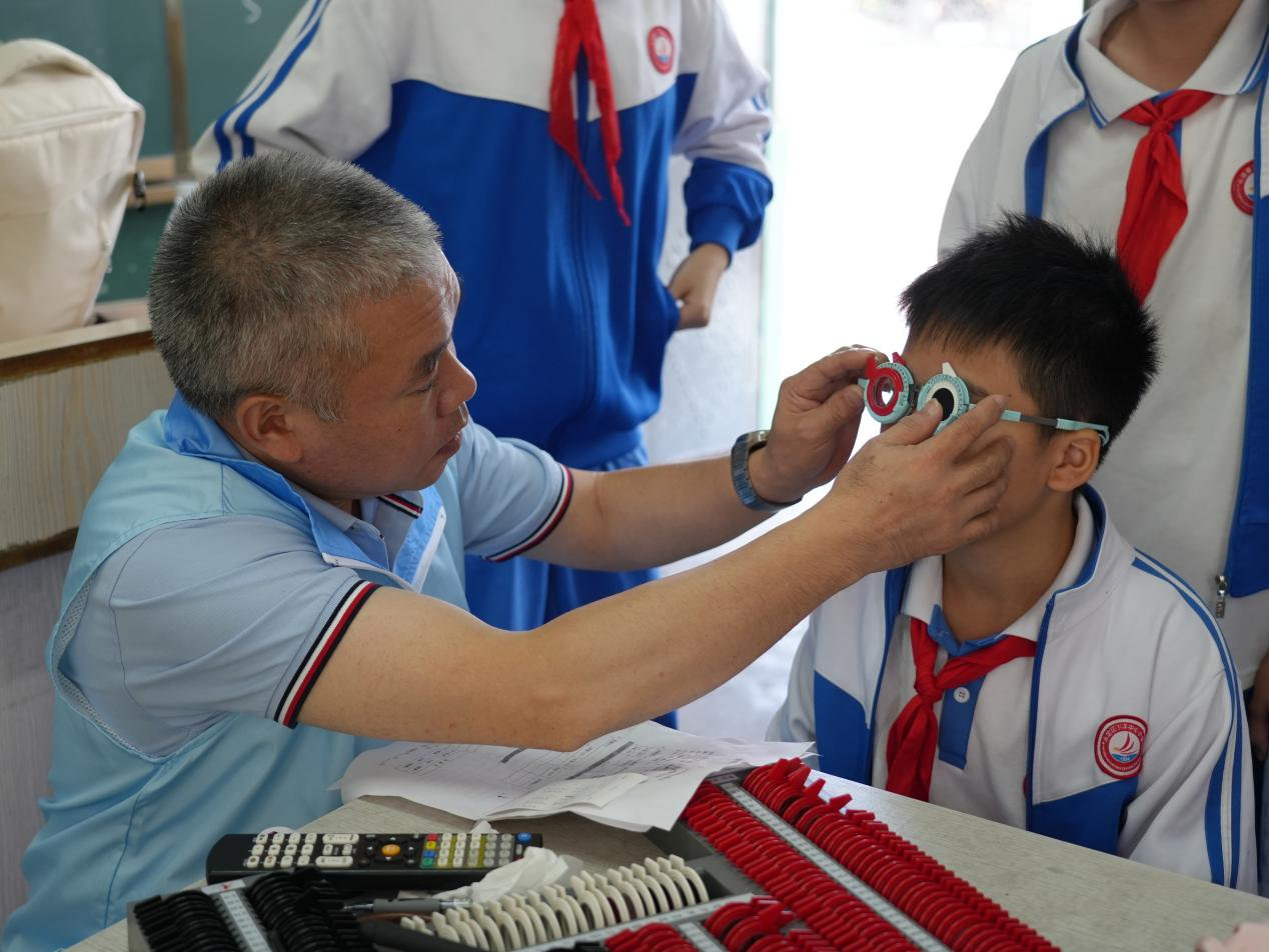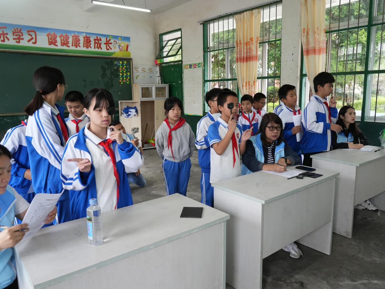 此次篩查項目包括視力初篩、散瞳、電腦驗光、插片驗光、挑選鏡架等專業步驟,并詳細記錄配鏡處方數據,后期將在廣東配制好眼鏡,寄回下洋中心小學,免費發放給近視問題學生。同時,志愿者還進行健康科普,宣傳愛眼護眼知識,引導少年及教師家長認識近視發生發展規律及其危害,強調預防控制近視的重要性及科普科學用眼方式。