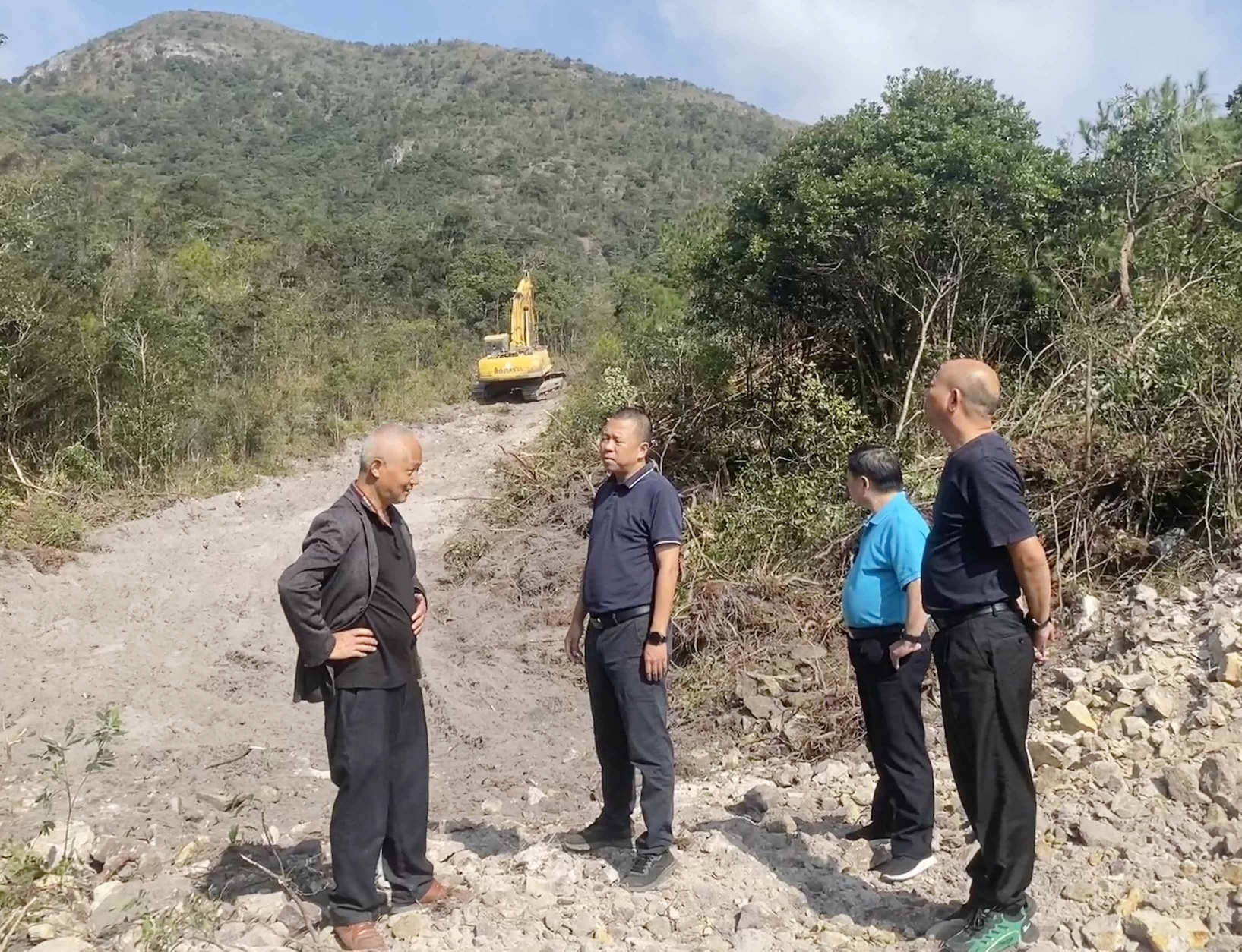 ▲ 11月6日,洪山鎮鎮長張忠誠帶隊解決王壽山森林防火道路施工存在的問題,積極推進施工進度。