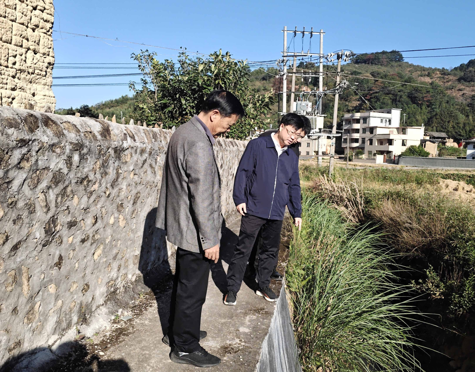 ▲ 11月7日,湖坑鎮黨委書記溫永招現場推動奧杳村“一事一議”項目建設。
