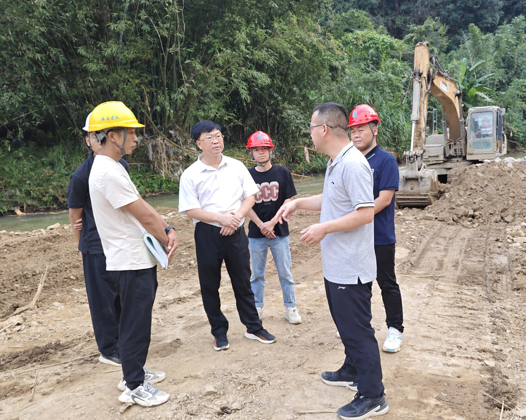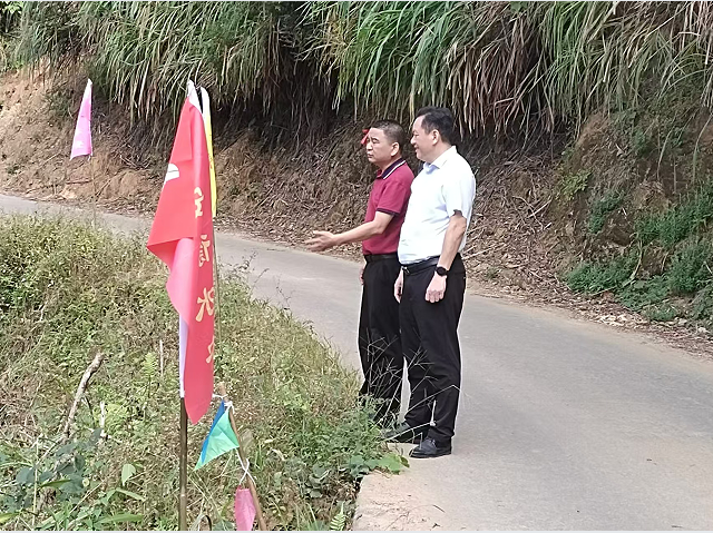 ▲ 11月5日,古竹鄉鄉長盧榮富帶隊前往大德村協調解決2024 年古竹溪小流域省級水土流失綜合治理項目建設存在的問題和困難,對施工安全、工程質量等提出具體要求。