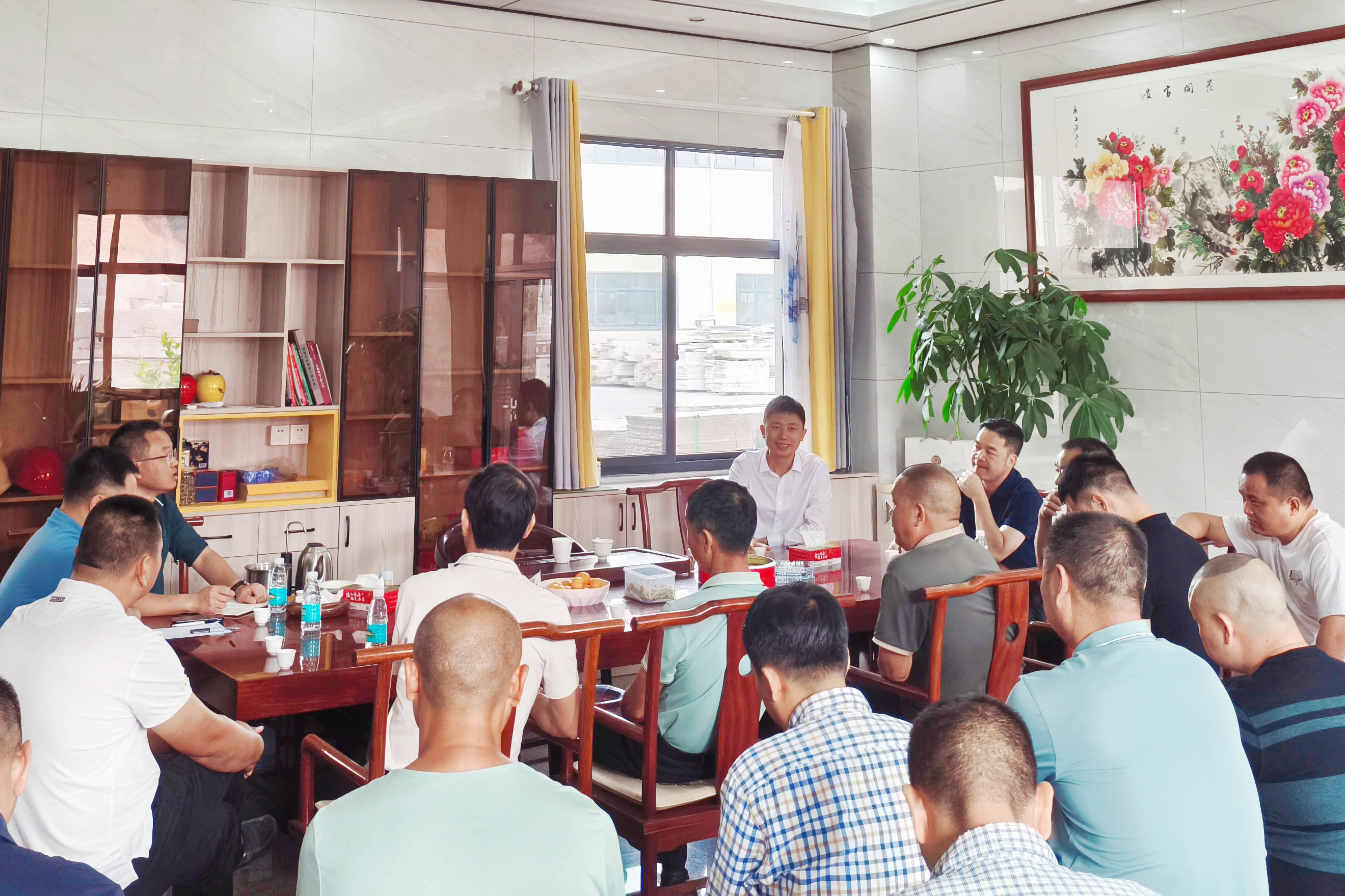 ▲11月13日,區(qū)委副書記蘭光在永定紅石材循環(huán)經(jīng)濟產(chǎn)業(yè)園主持召開座談會,對石材荒料開采、經(jīng)營等工作提出具體要求,明確下一步工作措施。會上,區(qū)建材循環(huán)經(jīng)濟發(fā)展中心、礦業(yè)集團、園區(qū)各石材加工企業(yè)負(fù)責(zé)人暢所欲言,深入交流探討石材產(chǎn)業(yè)發(fā)展。