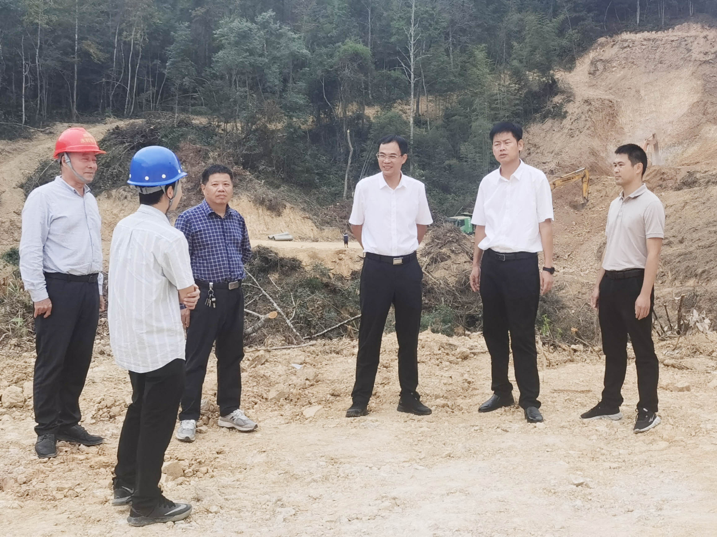 ▲ 11月13日,區(qū)水利局局長謝雪林帶隊到培豐鎮(zhèn)調(diào)研了解雙坑口水庫建設(shè)情況,解決存在困難問題,以確保安全、質(zhì)量、進度等要求落到實處。目前,該項目正加快大壩主體開挖進度。培豐鎮(zhèn)黨委書記林啟明、人大主席陳曉峰參加。