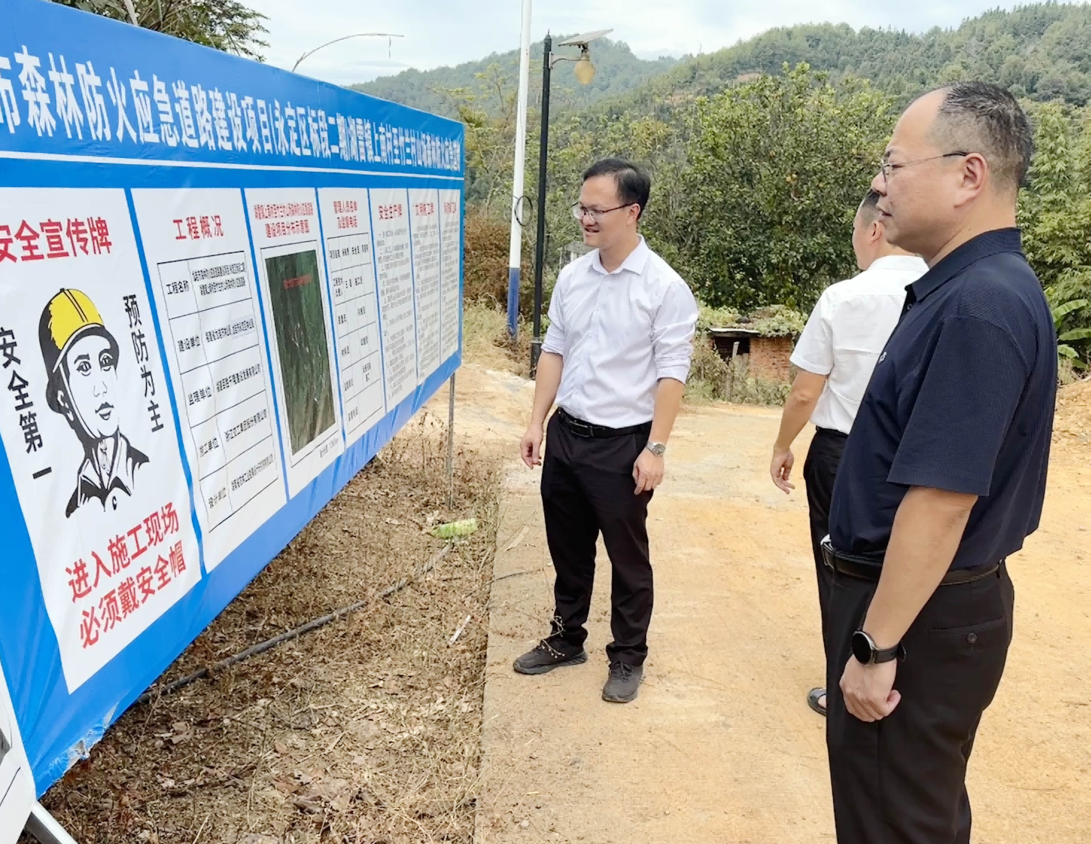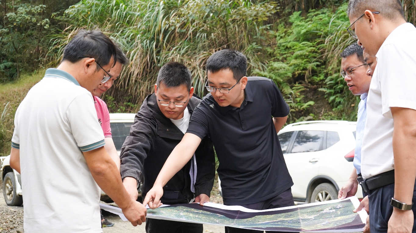 ▲ 11月11日,永定工業(yè)園區(qū)管委會主任李建熔、區(qū)城市管理和綜合執(zhí)法局局長張祖金現(xiàn)場討論廣藥王老吉(龍巖)產(chǎn)業(yè)園(永定)生產(chǎn)基地項目周邊地塊場地平整建設(shè)、永(定)梅(州)公路北側(cè)堰塞湖處置方案。