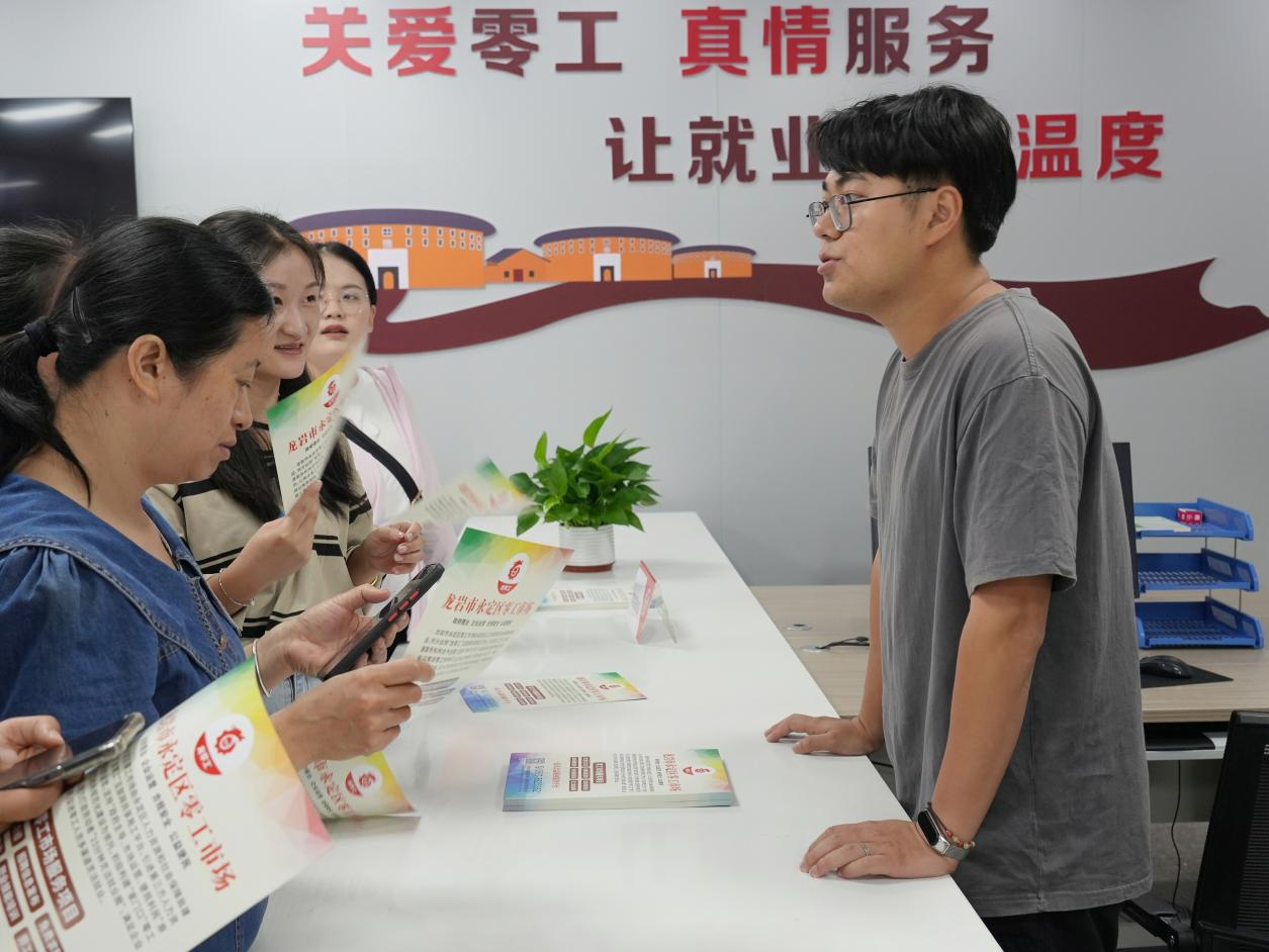 ▲ 11月12日,永定區(qū)零工市場揭牌運營,將為靈活就業(yè)人員提供規(guī)范穩(wěn)定有序的求職就業(yè)服務(wù)。副區(qū)長龔澤祥參加。 零工市場是永定區(qū)人力資源和社會保障局遵循政府主導(dǎo)與市場化運營相結(jié)合的原則,采用線上數(shù)字化平臺加線下服務(wù)站點的模式,為用工單位和求職者,構(gòu)建起一個全天候全方位全周期適合多人群多場景應(yīng)用的服務(wù)體系,市場涵蓋崗位介紹區(qū)、對接洽談區(qū)、綜合服務(wù)區(qū)等功能專區(qū),是集崗位信息發(fā)布、技能培訓(xùn)指導(dǎo)、政策咨詢、便民休憩等功能于一體的綜合性服務(wù)場所。