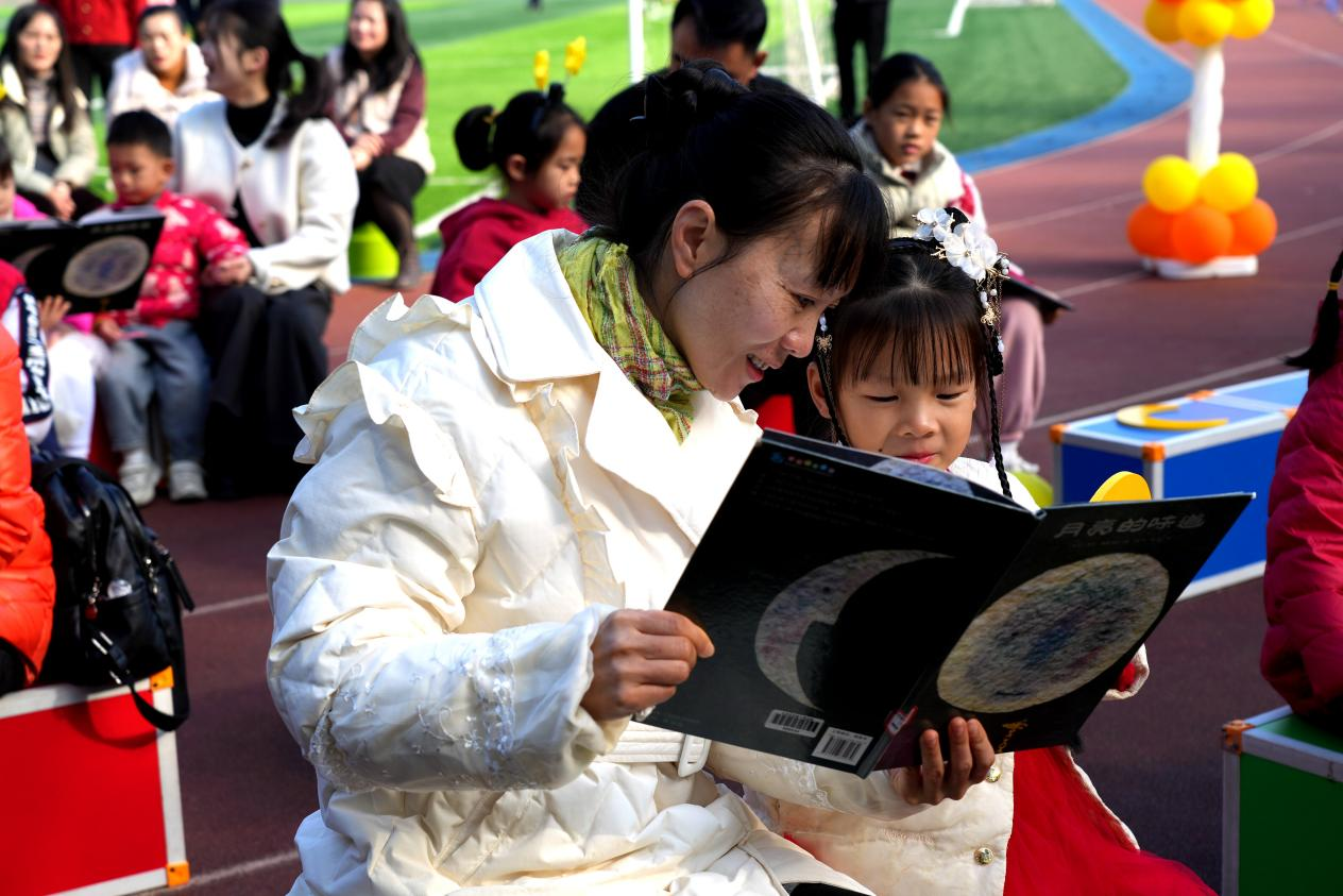 活動中,在指導老師的帶領下,家長和孩子一起共讀了繪本《月亮的味道》。在制作月亮、“月”的古詩吟誦及飛花令、月亮的神話傳說及月球探索等環節,父母引導孩子們或繪制心中的故事場景,或編排小劇場,將繪本中的情節以獨特的方式呈現出來。 “通過閱讀,我在識字量、理解能力等方面都有所提升。”古芊芊同學說,“我喜歡和爸爸媽媽一起閱讀,他們放下工作,放下手機,陪我一起讀書的感覺很好,我喜歡我們在一起共讀時的溫馨時刻。” “在親子閱讀中,我們和孩子一起進行角色朗讀和扮演,將童話故事中的情節和角色生動地展現出來,這不僅加深了孩子對故事的理解,還鍛煉了他們的思考能力和表達能力。孩子也比以前更加勇敢和活潑了,識字量也多了,我們親子關系也更加親密。” 學生家長古雪佳說道。