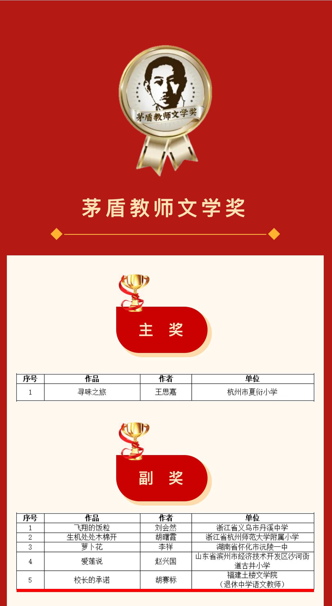 視頻加載中... 永定新聞網訊(廖金材 邱頌橋)日前,經茅盾先生家人授權,由浙江少兒閱讀聯盟、浙江教學月刊社、桐鄉市茅盾紀念館、桐鄉市烏鎮植材小學(茅盾小學母校)聯合主辦、《作文新天地》雜志承辦的首屆“茅盾作文獎”“茅盾教師文學獎”揭曉獲獎名單,永定區作家胡賽標榮獲“茅盾教師文學獎”·副獎,是福建省唯一獲獎的教師作家。