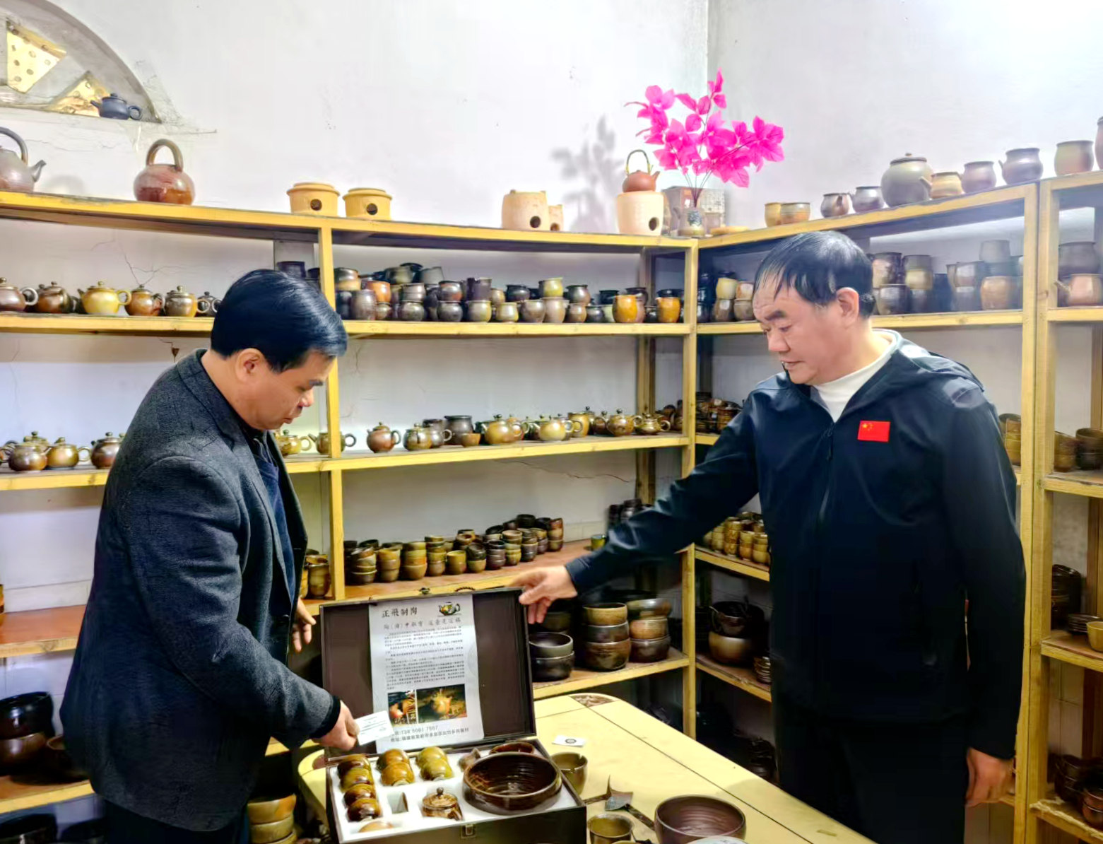▲ 1月13日,區(qū)人大常委會(huì)副主任林如居到古竹鄉(xiāng)調(diào)研非遺館建設(shè)情況,走訪非遺傳承人,探討交流如何在新形勢(shì)下創(chuàng)新破題創(chuàng)造出有吸引力的非遺文創(chuàng)產(chǎn)品。