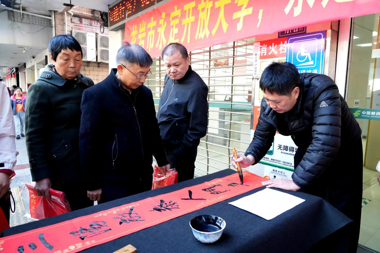 永定新聞網訊(黃秋萍)1月20日,永定開放大學聯合永定區傳統文化研究會舉辦了新春送福送春聯活動。