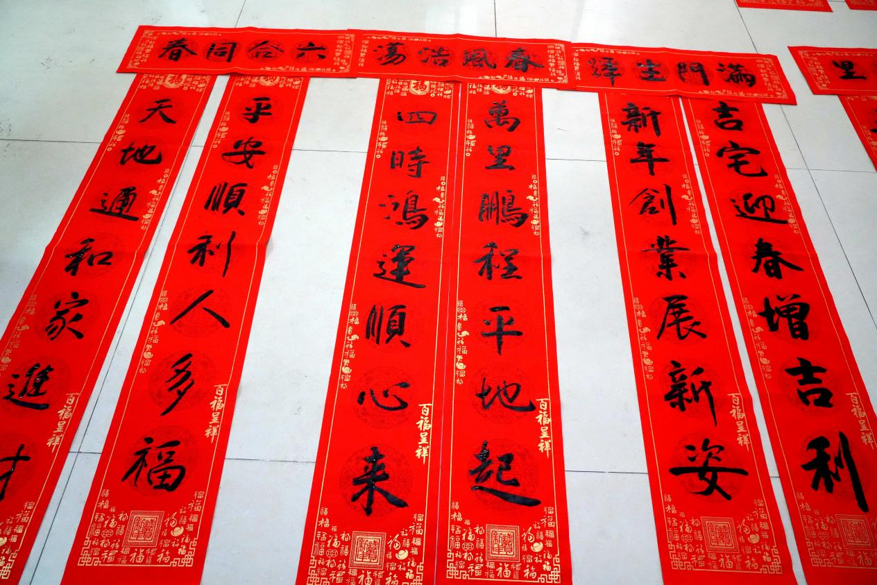 活動現場,書法家們飽蘸濃墨、以筆寄意,一幅幅飽含翰味墨香、寓意吉祥新瑞的春聯,在他們筆下揮手而成。既有“喜迎福星家興旺,樂接財神人安康”“新春大吉行好運,佳歲平安照福星”等傳統春聯,還有一些根據時代特色和鄉村新貌創作的個性化春聯送到了市民手中,讓市民感受傳統文化的魅力,為即將到來的春節增添了歡樂祥和的氣氛。