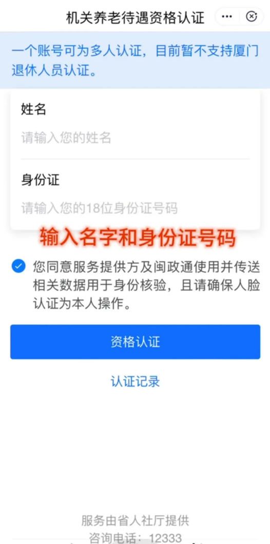 3. 在頁面上輸入姓名和身份證號(hào)碼(身份證尾號(hào)為“X”的,應(yīng)輸入大寫),點(diǎn)擊“資格認(rèn)證”。