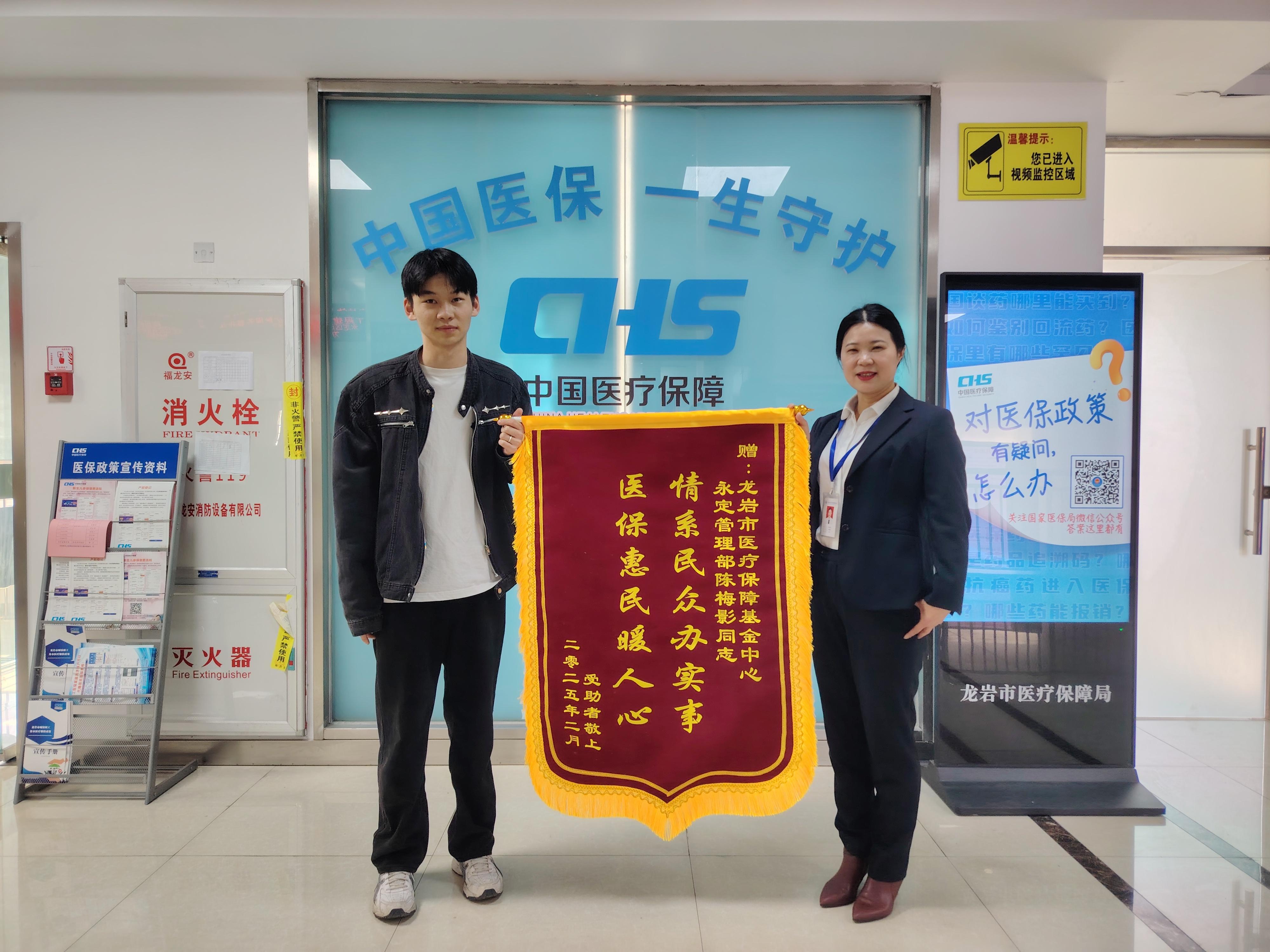 視頻加載中... “真的很感謝醫(yī)保工作人員便捷、暖心的服務(wù),太感謝你們了。”3月3日上午,龍?zhí)舵?zhèn)楓林村參保人嚴海榮的家屬將寫著“情系民眾辦實事,醫(yī)保惠民暖人心”的錦旗送至永定區(qū)行政服務(wù)中心醫(yī)保窗口,以此表達對工作人員的謝意。
