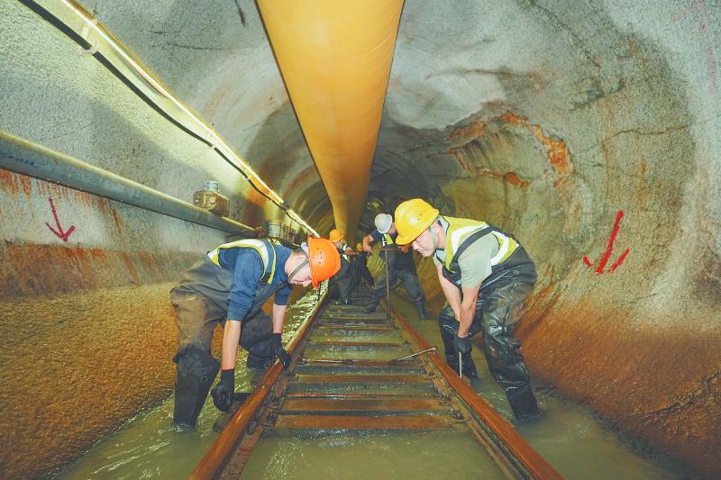 在萬安溪引水工程TBM(隧道掘進機)洞段,工人正在對軌道進行檢修。溫連光 攝