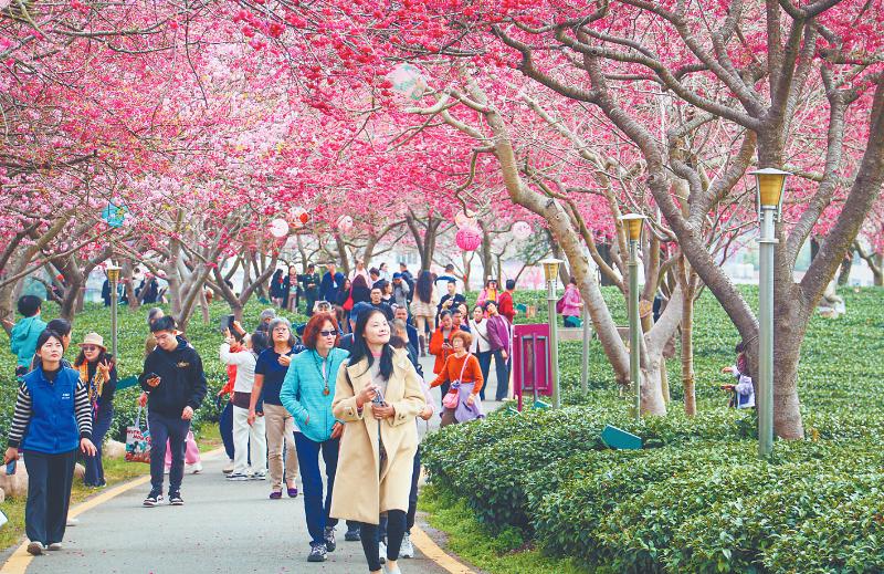 漳平永福櫻花盛開,吸引全國各地游客紛至沓來,共赴春日之約。章宸睿 攝