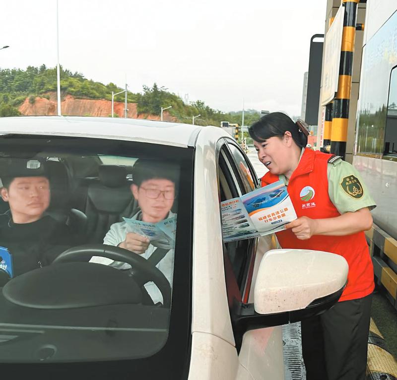 在龍巖高速永定收費站,高速志愿者們身著紅馬甲,手持高速路線行車指南,為過往司乘提供詳盡的路線咨詢服務,指引方向,答疑解惑,用溫暖的話語與貼心的服務為“五一”旅途增添了一抹亮色。