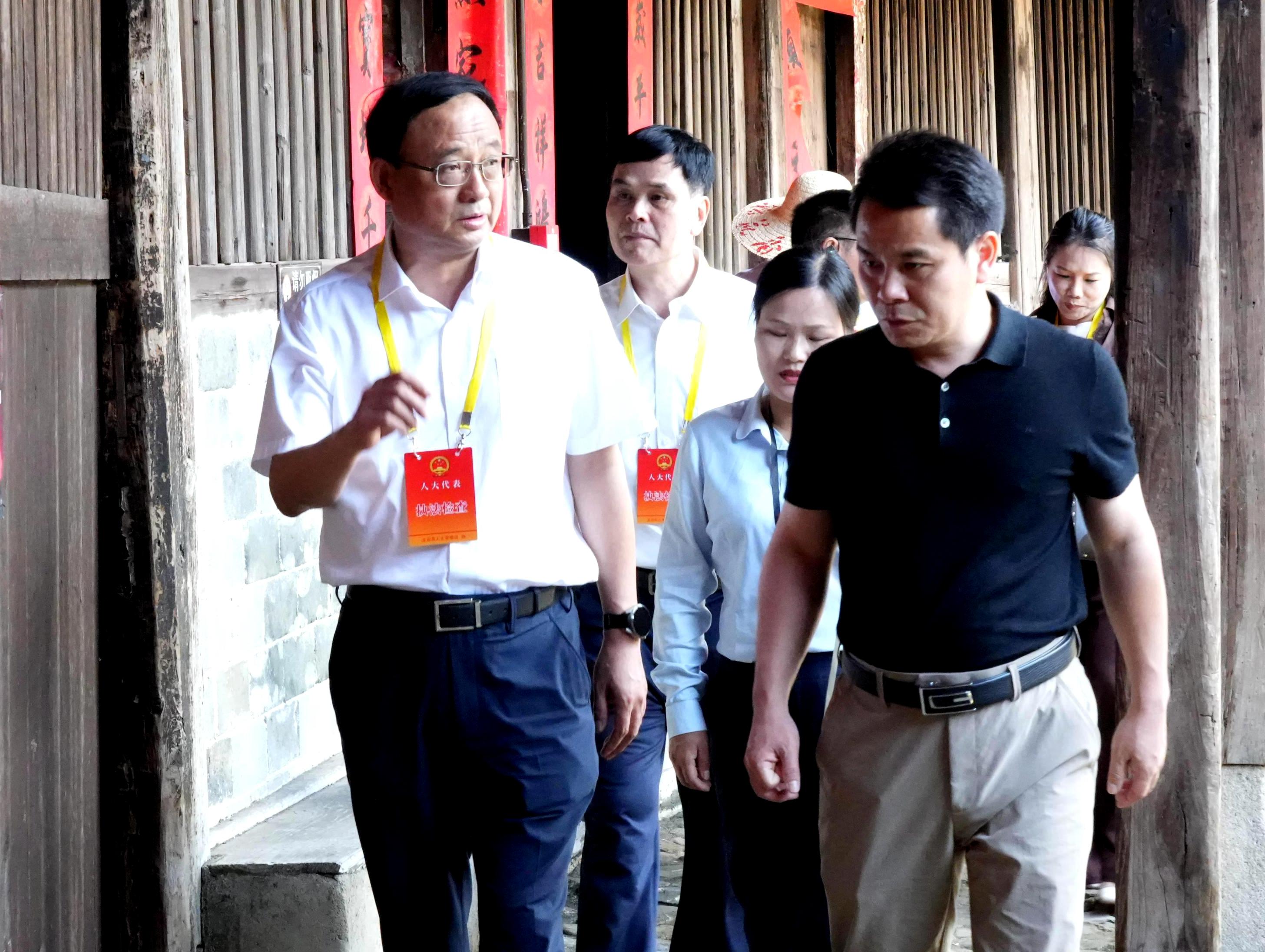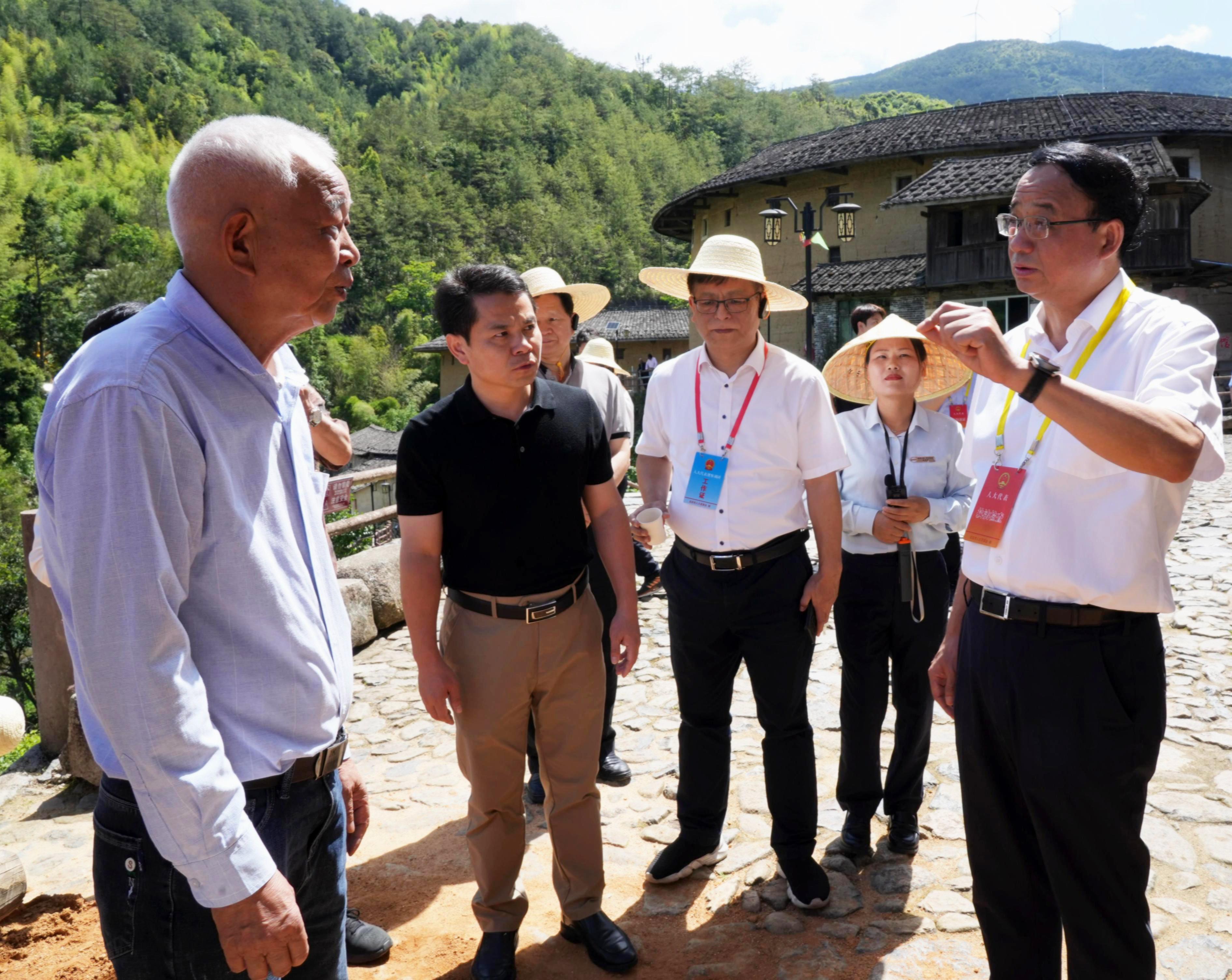 詹昌建一行先后前往初溪土樓群、下洋僑鄉文化會客廳“翰墨中川”等地,通過實地調研、聽取匯報、現場交流等方式,詳細了解客家土樓營造技藝、客家土樓楹聯、客家山歌、客家提線木偶等客家文化項目保護情況,并就相關問題提出建議意見。