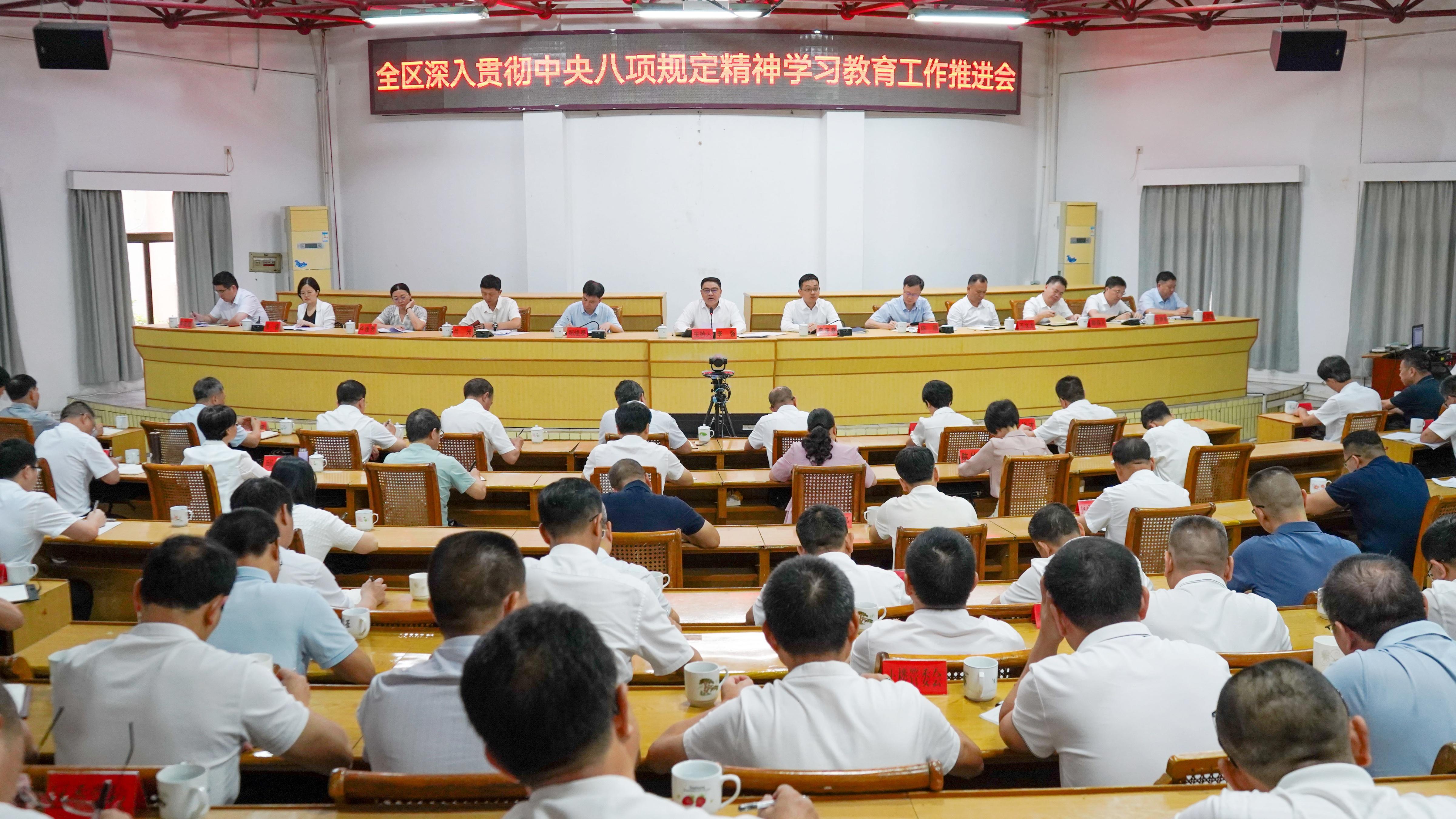 會議強調,全區(qū)各級各部門要提高政治站位,切實增強深化學習教育的思想自覺。深刻認識開展深入貫徹中央八項規(guī)定精神學習教育是捍衛(wèi)“兩個確立”、做到“兩個維護”的具體實踐,自覺把思想和行動統(tǒng)一到中央和省委、市委決策部署上來,不折不扣地將學習教育各項任務落到實處。要聚焦重點任務,持續(xù)推動學習教育走深走實。深入學習領會習近平總書記關于開展學習教育的重要講話和重要指示精神,在“深學”上下真功;聚焦四類突出問題和隱形變異表現(xiàn)精準查擺,在“實查”上動真格;緊盯問題整改,持續(xù)跟蹤問效,在“嚴改”上見真效。要強化成果轉化,保障發(fā)展提質增效。把學習教育融入中心工作一體推動、協(xié)同開展,引導廣大黨員干部在實施“3511”高質量發(fā)展工程、深化“1339”兵團式作戰(zhàn)行動和重點項目攻堅戰(zhàn)役等主戰(zhàn)場上爭先出彩、干出新業(yè)績,推動學習教育出好成果、出真成效。 會上,傳達學習了深入貫徹中央八項規(guī)定精神學習教育有關精神,通報了違反中央八項規(guī)定及其實施細則精神典型案例及全區(qū)深入貫徹中央八項規(guī)定精神學習教育階段工作開展情況。