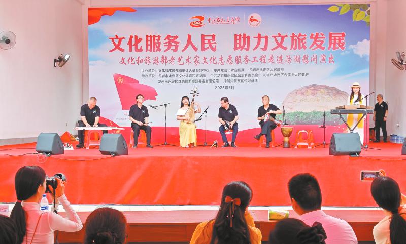 6月19日下午,文化和旅游部離退休人員服務中心組織30多位老藝術家來到永定區合溪鄉湯湖村,舉辦了“文化服務人民,助力文旅發展”為主題的慰問演出。他們與當地的客家文化志愿者一起為老區群眾奉獻了20多個精彩的節目,受到到場的500多位群眾的熱烈歡迎。
