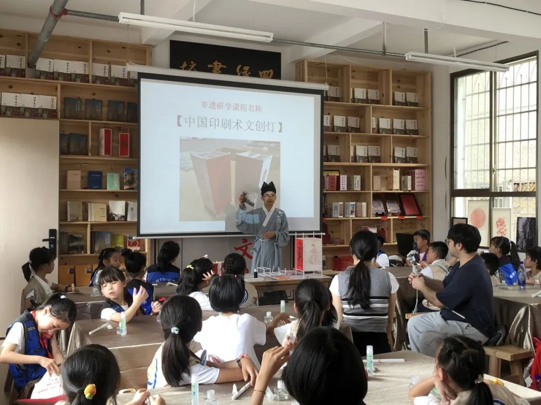在歡快的手舞表演中,小記者們正式開啟了非遺探訪之旅。在非遺文創園,小記者們在非遺傳承人的指導下參觀展廳、制作花燈,運用中國傳統印刷術,結合現代科技,在指尖翻飛間感受到了傳統技藝的魅力。