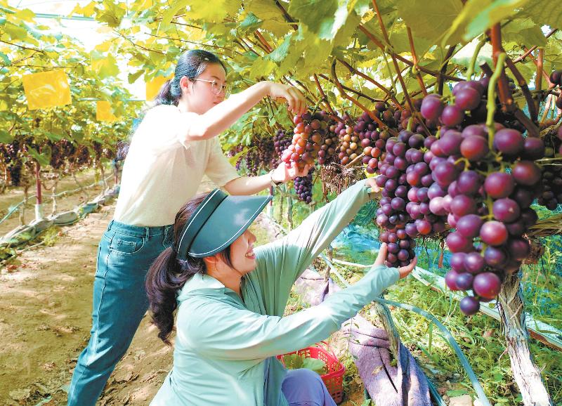 小游客們騎在馬上,既緊張又興奮。 8月10日正逢周末,筆者來到永定區虎崗鎮灌洋馬術旅游度假村,一場別開生面的騎馬體驗活動正在這里進行。游客們身著專業的騎馬裝備,在經驗豐富的教練指導下,躍上馬背,開始探索之旅。他們或穿梭于林間小道,感受策馬奔騰的激情;又或是漫步于湖畔草地,盡享大自然的寧靜時光。 “置身于這如詩如畫的自然環境中。每一次策馬奔騰都讓我心潮澎湃。”游客鄭勇智說,“我真正體會到了騎馬旅行的樂趣與意義,確實不虛此行。”“這里既能讓孩子親近自然,又能培養運動興趣,這種寓教于樂的旅游方式很有吸引力。”游客吳國微說。“我是來永定看土樓的,聽說這里可以騎馬,小孩子很感興趣,就拐過來體驗一下。”一位林姓游客說道。 “現在正值暑期,前來學習和體驗馬術的孩子非常多,游客里年紀最小的才5周歲。最高峰時每日客流量達200余人,周邊城市的游客也都慕名而來。”度假村負責人賴武鑫介紹說。據了解,灌洋馬術旅游度假村正分階段推進建設。目前,一期工程已完成馬術核心功能區改造,引進35匹良種馬匹,同步開發的馬文化博物館也即將對外開放。“整個項目建成后預計年營業額1500萬元,創造稅收50萬元以上,將有效延長永定旅游產業鏈條。”賴武鑫信心滿滿地說。 永定區依托客家土樓這一旅游大IP,大力拓展新的旅游項目、亮點,讓本地游客有新的消費動力,讓外地慕名而來的游客在參觀土樓之余,還能有其他的旅游項目可供選擇,讓游客留得下來,玩得盡興。 在培豐鎮洪源村的星星家庭農場的40畝葡萄園里,葡萄藤下掛滿了如七彩瑪瑙般的葡萄,慕名而來的游客提著果籃穿梭其間。“今年葡萄的產量和品質都非常好,現在每天都有五六批人前來采摘,其中還有不少外地游客,說是參觀土樓后過來的。葡萄的銷路很不錯。”種植戶簡光星說。 如今的“生態種植能手”簡光星,曾是培豐鎮眾多煤農中的一員。“當年挖煤月入過萬,但山禿了、水渾了,心里總不踏實。現在看著自己的果園越來越好,我是信心十足,越來越有干勁。”簡光星說。如今在培豐鎮,像簡光星這樣從“挖煤匠”變“新農人”的轉型煤農已有100多個。游客們得知這里曾因煤礦開采而滿目瘡痍時,紛紛向這些新農人豎起了大拇指。 一處知名的旅游景點可以輻射周邊一片區域發展旅游相關項目。在位于“龍湖”周邊的峰市鎮高南塘連片100多畝的臺灣脆梨種植基地,繁茂的梨樹上掛滿了沉甸甸的果實,碩大飽滿的臺灣脆梨在陽光的照耀下,散發著誘人的光澤。“這梨口感脆,水分足,果肉厚實。每年我都會帶家人一起來采摘。”前來采摘的游客葛球星說。“今年的脆梨產量比去年增加了兩成左右,果實個頭也更大。今年的年產量大概能到20萬斤。”脆梨種植大戶王宗探說,“這幾天,我們通過‘線上+線下’的銷售方式已經銷售了1萬余斤,不少客戶還是回頭客。” 永定區峰市鎮高南塘山原本是石頭山,土地貧瘠,植被稀少。峰市鎮依托地處“龍湖”景區周邊的地理優勢,因地制宜引導當地群眾開山種果,積極推進水果產業標準化、規范化、示范化建設。通過引進先進的種植技術和管理經驗,不斷提升水果的品質和產量。幾年下來,峰市鎮成功引種了包括蓮霧、脆梨、樹葡萄等在內的臺灣水果,種植面積達到1000多畝。這些臺灣水果在這片石頭山上扎根落地,茁壯成長,不僅豐富了當地的水果品種,也為鄉村旅游增添了新的亮點。不少游客慕名而來,體驗采摘樂趣,品嘗特色水果。 近年來,永定區著力打造“土樓+”鄉村旅游品牌,2024年已通過振成樓微縮模型入藏國家博物館等IP運營,并推進“土樓旅游演藝”等9個重點文旅項目,總投資34.3億元。這些項目在2025年上半年持續釋放效益,帶動周邊鄉村民宿、特色餐飲、農耕體驗等業態發展。據了解,2025年上半年,永定區累計接待游客511.84萬人次,同比增長12.5%,游客旅游總花費51.75億元,同比增長13%,其中鄉村旅游項目如土樓景區特色民宿、農耕體驗等成為重要增長點。上半年第三產業增加值增長8.6%,文旅產業貢獻顯著。