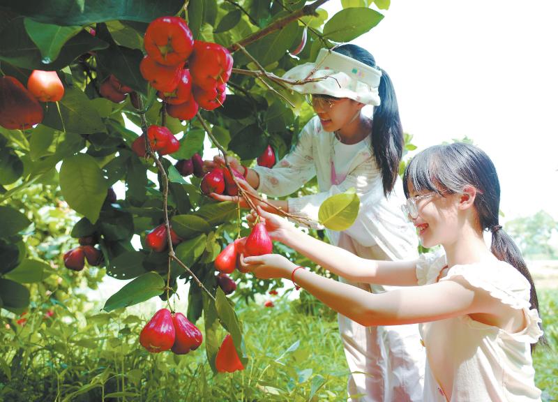 色彩鮮艷的蓮霧掛滿枝頭,吸引著小朋友的目光。