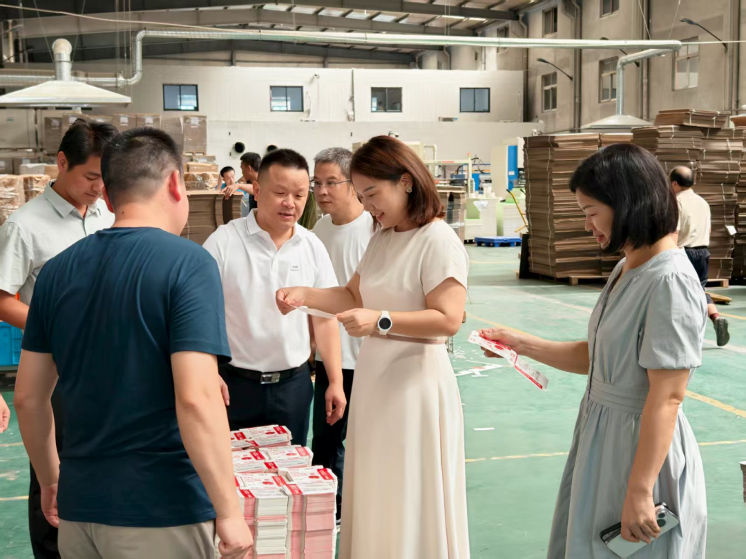 考察組先后走訪了杭州創(chuàng)豐包裝有限公司、鑫藍新材料科技有限公司等鄉(xiāng)賢企業(yè),參觀了生產(chǎn)線和智能倉儲系統(tǒng),詳細了解企業(yè)技術(shù)創(chuàng)新與市場布局,積極推介永定區(qū)和岐嶺鎮(zhèn)投資環(huán)境、資源優(yōu)勢及招商政策,熱情邀請企業(yè)家回家鄉(xiāng)投資興業(yè),初步達成合作意向。