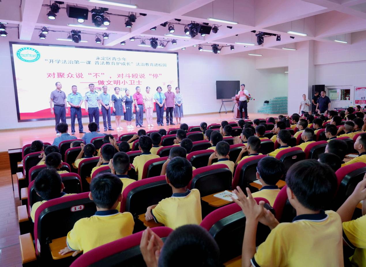 視頻加載中... 9月2日,永定區關工委聯合區人民檢察院、區教育局、區婦聯、團區委、區司法局等相關單位在區城東小學開展“開學法治第一課 普法教育護成長”主題活動,為全校師生送上一堂生動的法治啟蒙課,筑牢青少年法治思想防線,有效預防校園違法犯罪。