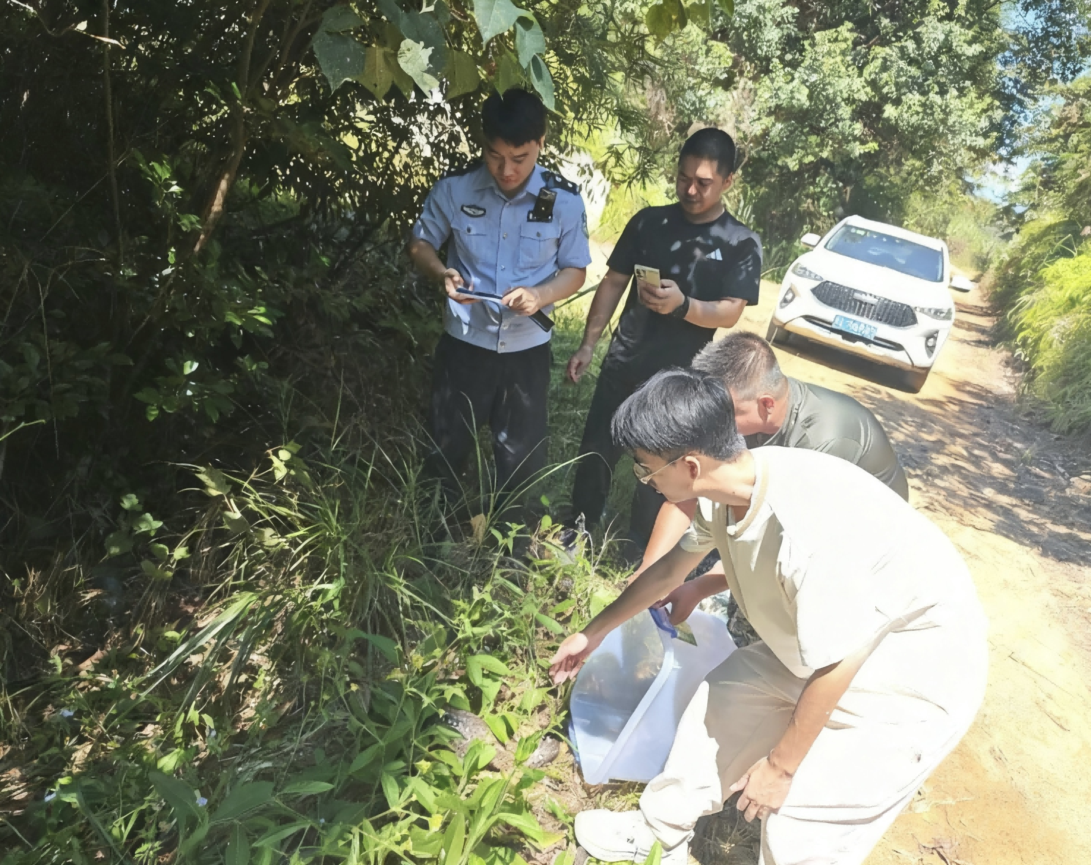 9月16日,下洋派出所接到群眾電話報警稱發(fā)現(xiàn)一只形態(tài)奇特的動物受困,民警會同林業(yè)站干部第一時間趕往現(xiàn)場。